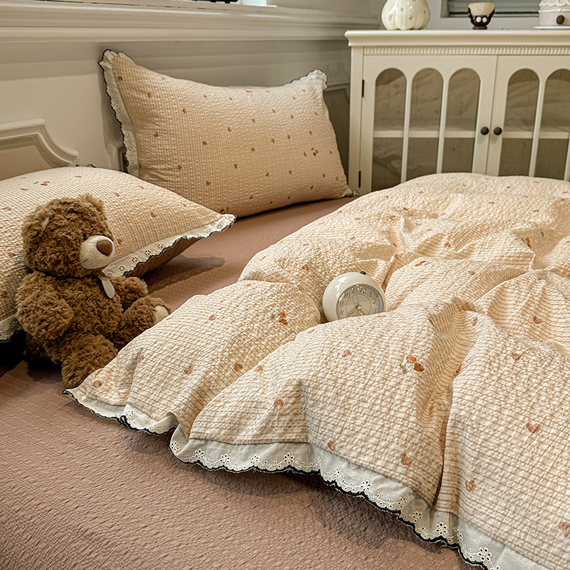 (总)一比一家纺 2026新款彩色花边木棉皱皱纱夏被四件套,阿吉豆,初心粉,初心蓝,扶摇,赫本,花间女孩,花漫漫,阑珊,罗卡,奶芙喵,甜心格格,午后花园,小马驹,邂逅,野餐兔,樱花季,悠然,紫烟