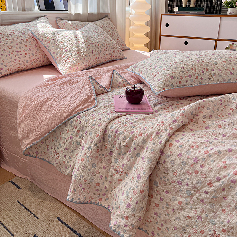 商品名称:一比一家纺 2026春夏新款三角针泡芙纱夏被夏凉被空调被四件套 三角针夏被-花影