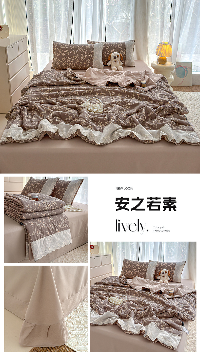 竹合家纺 2026春夏新款古法水洗仿棉云感棉夏被四件套全棉花边印花夏凉被空调被 棠梨