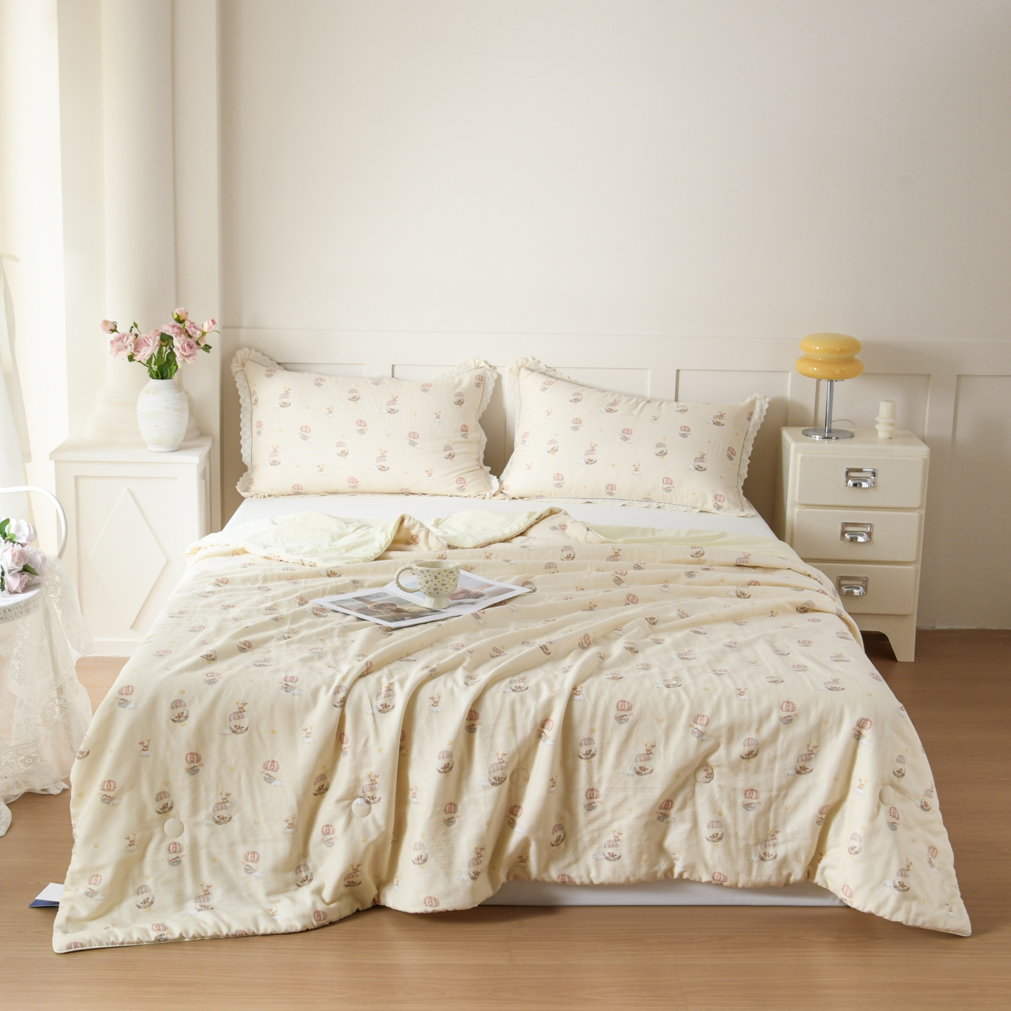 (总)馨宜 2025水柔砂洗全棉大豆被(免套被套)二合一五件套 全棉冬被春秋被子母被纤维被春秋被四件套,巴黎午后,光影絮语,花样年华,童梦奇缘,莫奈花园