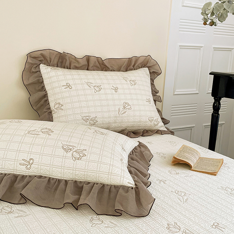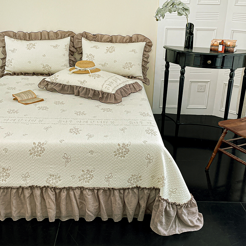 商品名称:红夫人 2026春夏新款韩式荷叶边高克重双色提花全凉感凉席三件套【单层不复合】 韩式郁香