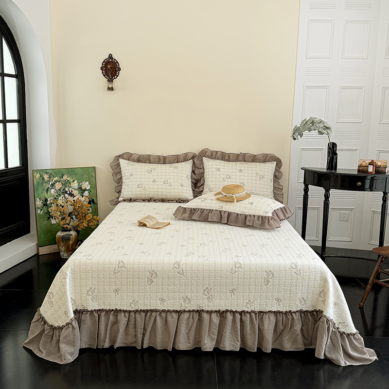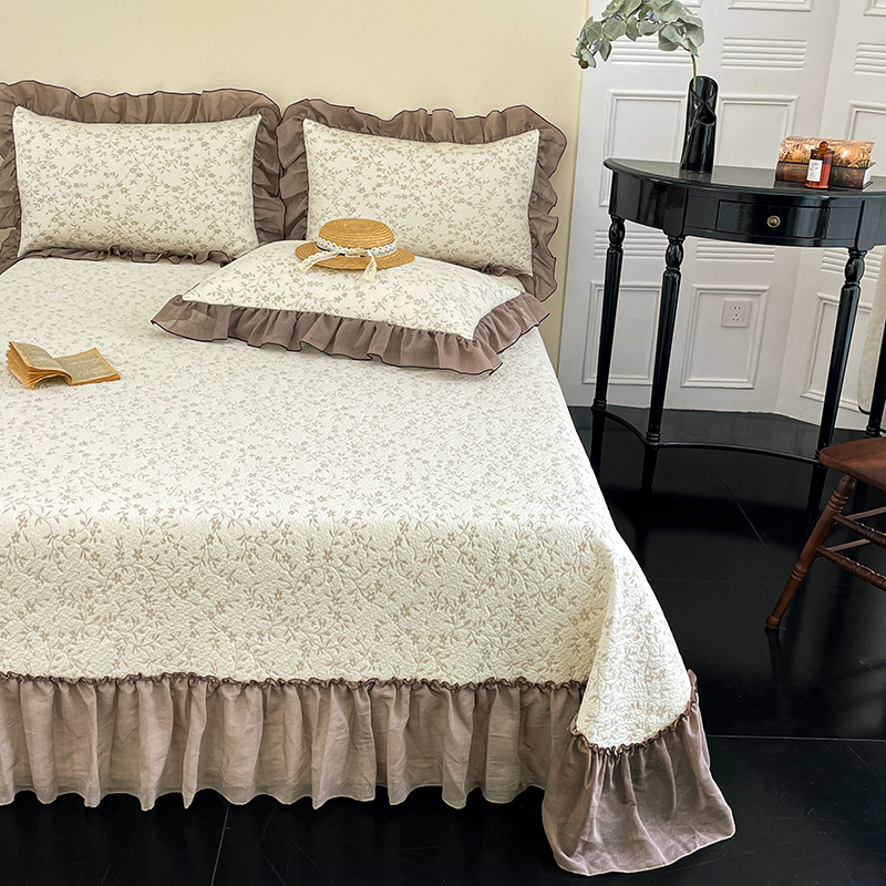 (总)红夫人 2026新款春夏韩版床盖款多功能夏被床盖四件套--花絮,豆沙,淡粉,奶桔色,浅紫,天蓝
