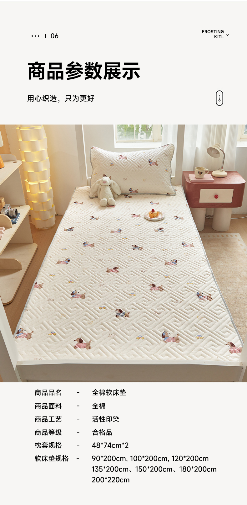 • 91家纺网 家纺一手货源 找家纺 (总)舒居家纺 2026新款学生床全棉软床垫床盖,围脖狗狗,萌萌心语,熊猫彩绘,糕点熊,百合兔草绿,嘉年华,魔法精灵,卡哇伊,飞天萝卜,浮云初梦,海洋之心,酷比狗,南瓜派,生日熊,唐顿庄园,微笑草莓,小兔可可,心心颜颜,熊猫宝贝,月之心,叠拍