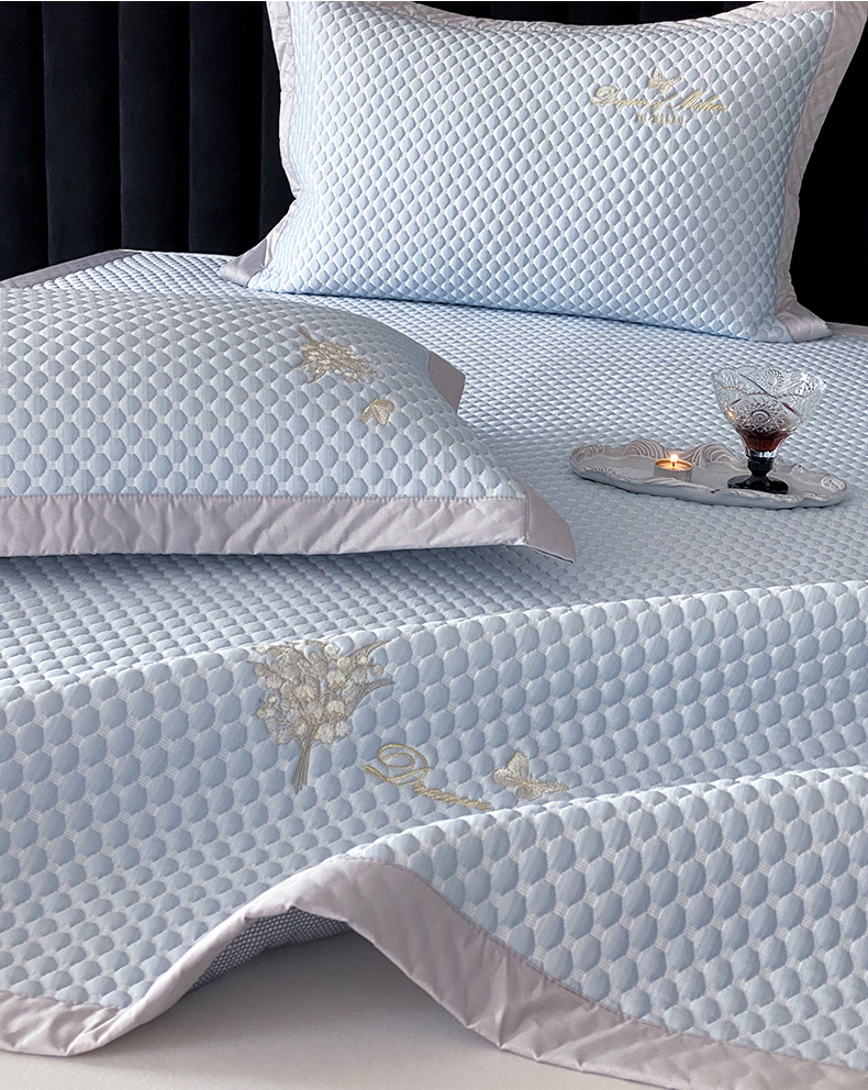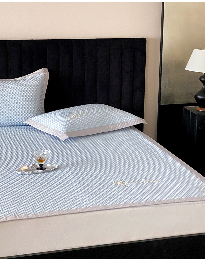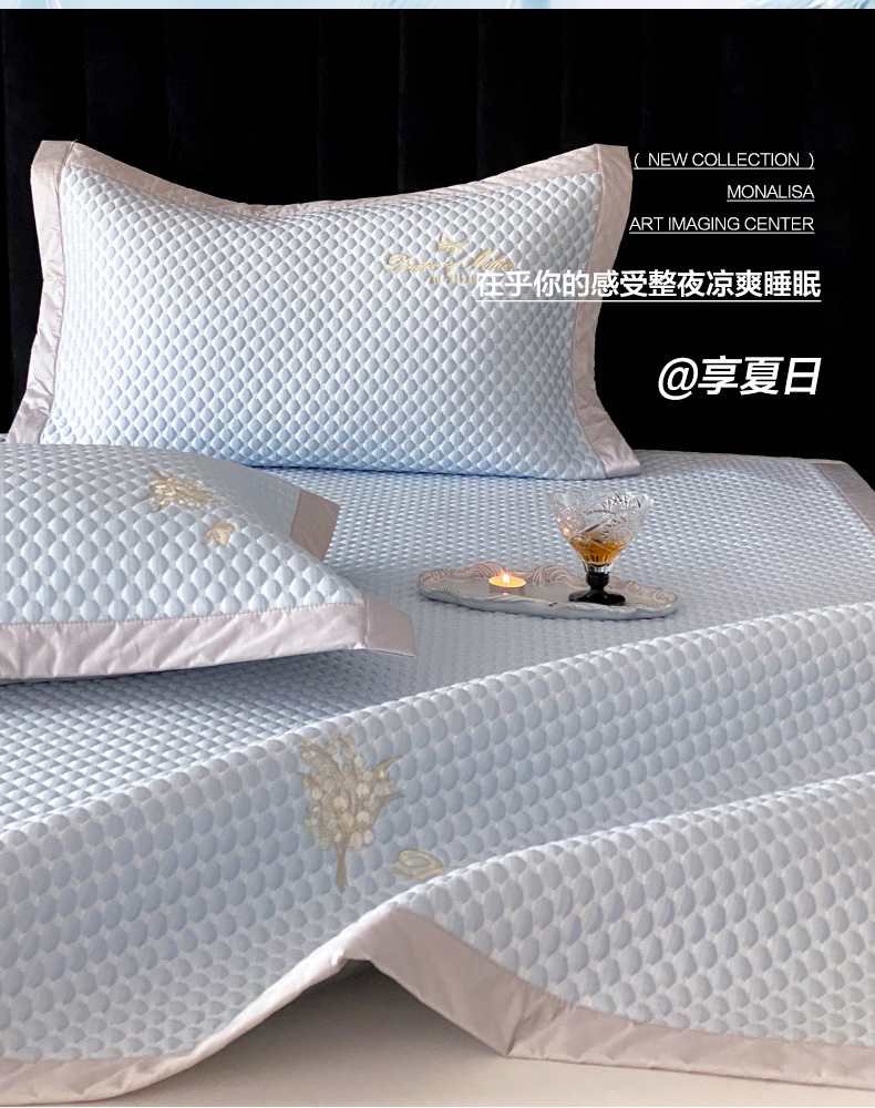 商品名称:云栖家居 2026新款春夏凉豆豆PE冰感凉席席子全棉宽边软平席-铃兰 铃兰-蓝