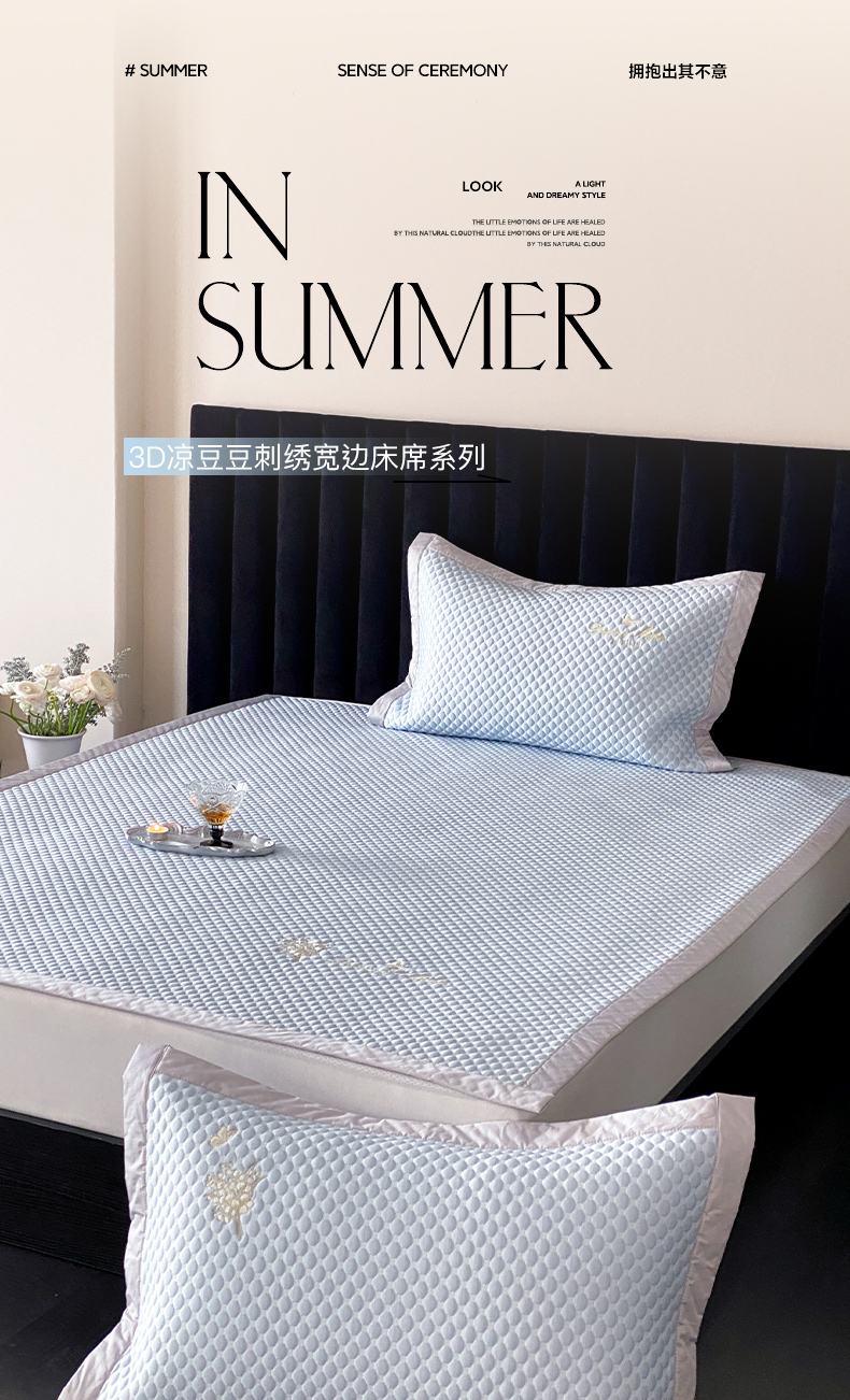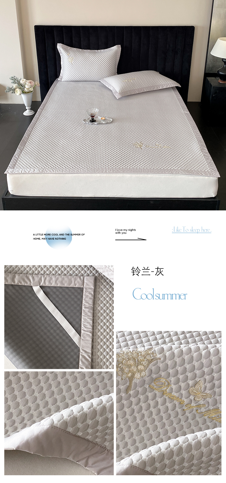 (总)云栖家居 2026新款春夏凉豆豆PE冰感凉席席子全棉宽边软平席-铃兰,铃兰-粉,铃兰-灰,铃兰-蓝