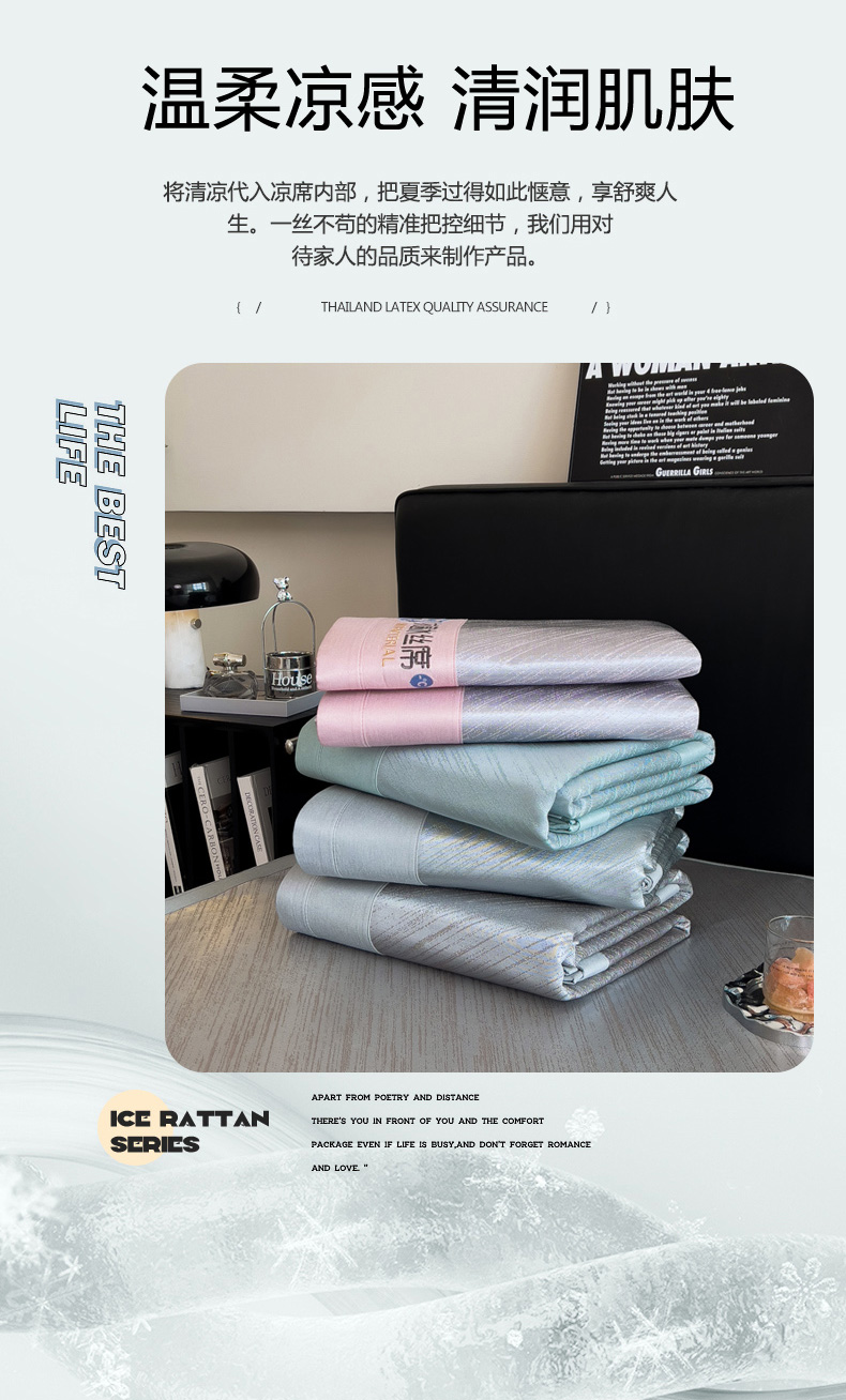 (总)印季家纺 2025新款轻奢简约凉感丝泡泡席-格调凉席,藏蓝,米黄,墨绿,浅粉,银灰