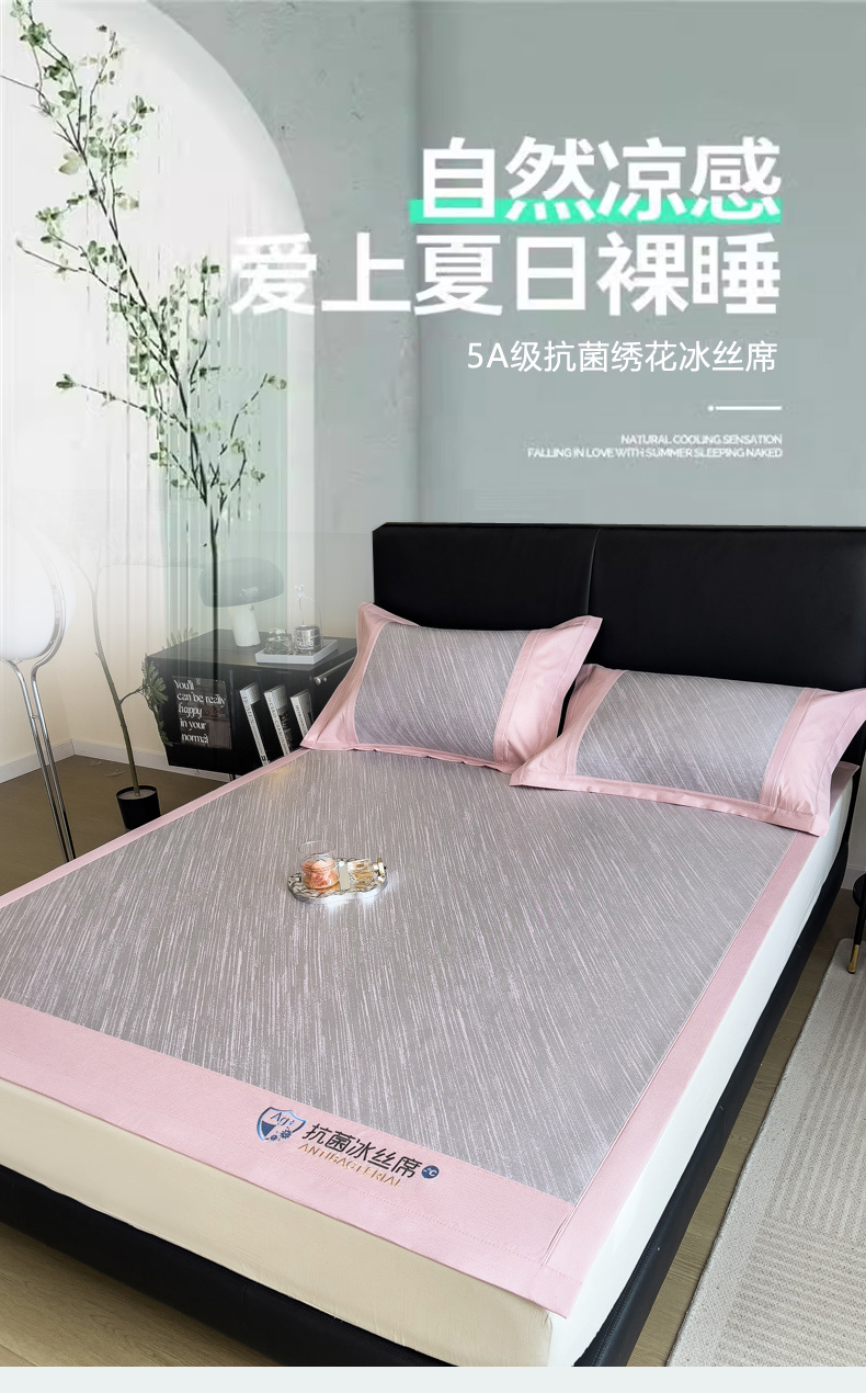(总)印季家纺 2026新款5A级抗菌加厚绣花冰丝席-流星雨(床席款)