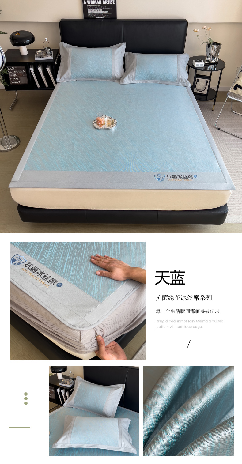 (总)印季家纺 2026新款刺绣冰感条纹全锦凉席席子三件套,冰川蓝-平铺款,冰莓粉-平铺款,冰烟灰-平铺款,冰川蓝-床笠款,冰莓粉-床笠款,冰烟灰-床笠款,组合图仅供展示不可下单