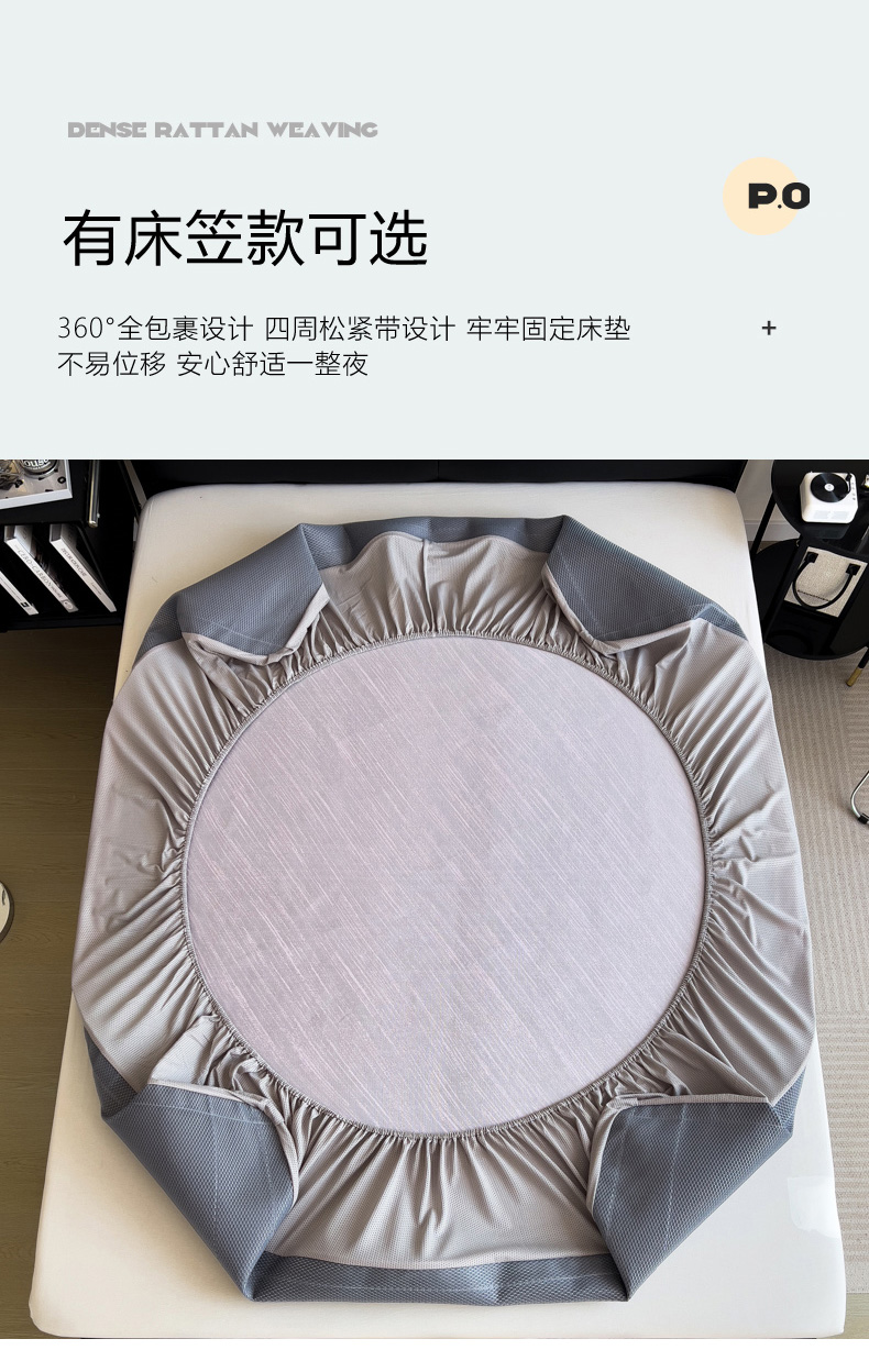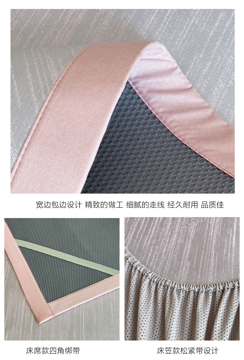 (总)印季家纺 2025新款纯色加密冰藤床裙凉席,粉色,灰色,咖啡,浅紫,水绿,天蓝
