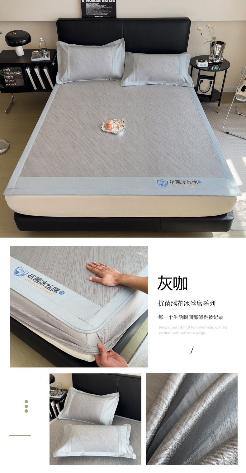 (总)印季 2025新款5A级抗菌加厚绣花冰丝席-流星雨,豆沙,灰咖,天蓝,蓝灰,水绿,银灰