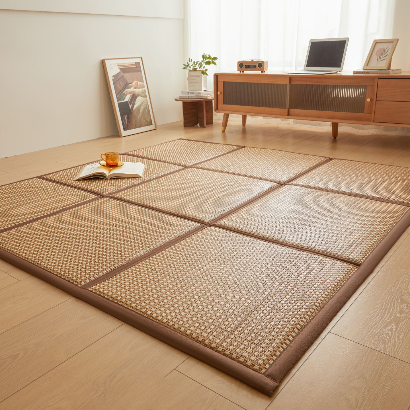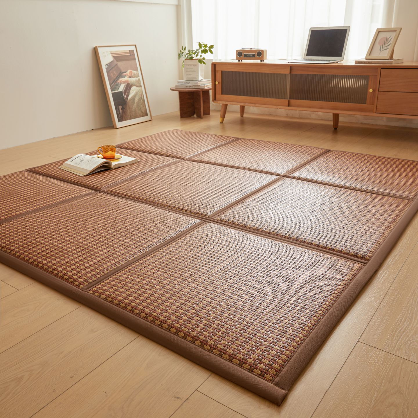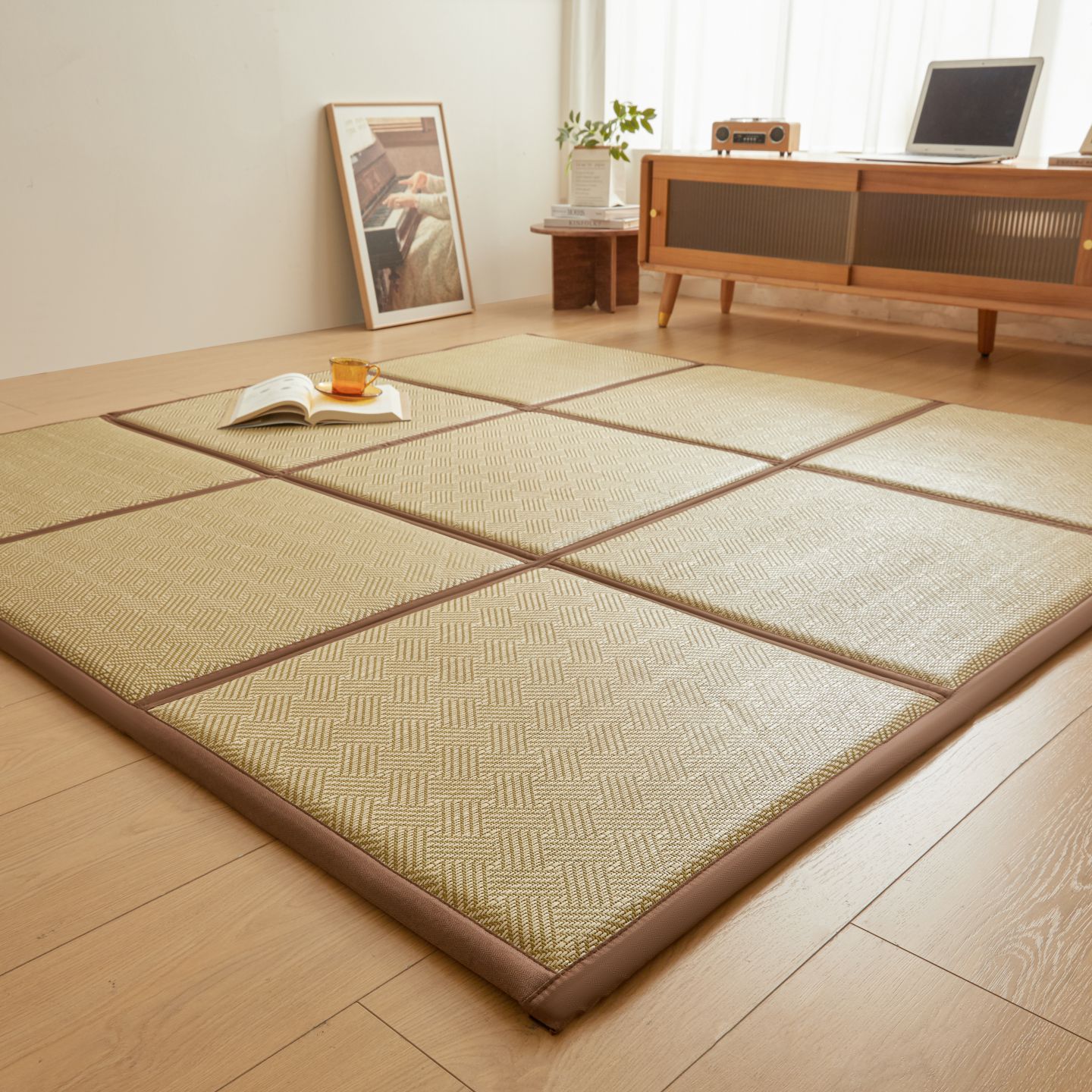 (总)航途席业 2026新款拼接格榻榻米地垫,白玉藤,饼干花,古奢藤,九宫格,绿饼干