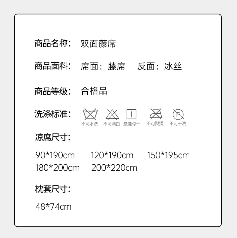200x220cm单凉席+枕套一对 | ¥60.00 |