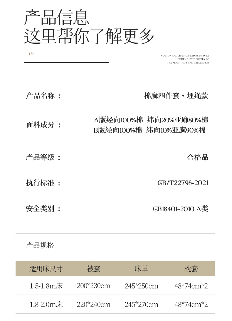 商品名称:(总)瑞米家居 2026新款埋绳款棉麻四件套-简物纯质