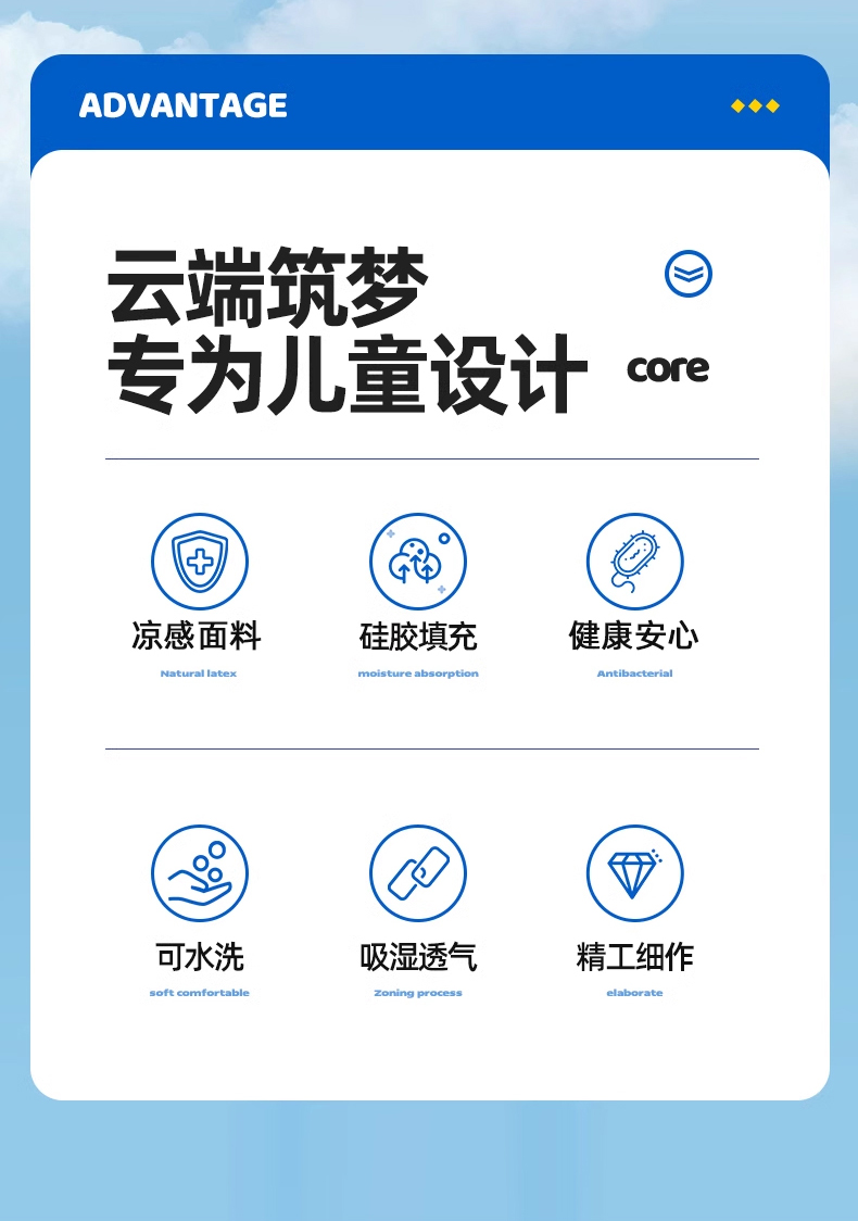 商品名称:九州枕芯 2026新款硅胶婴儿定型枕枕头枕芯 蓝色