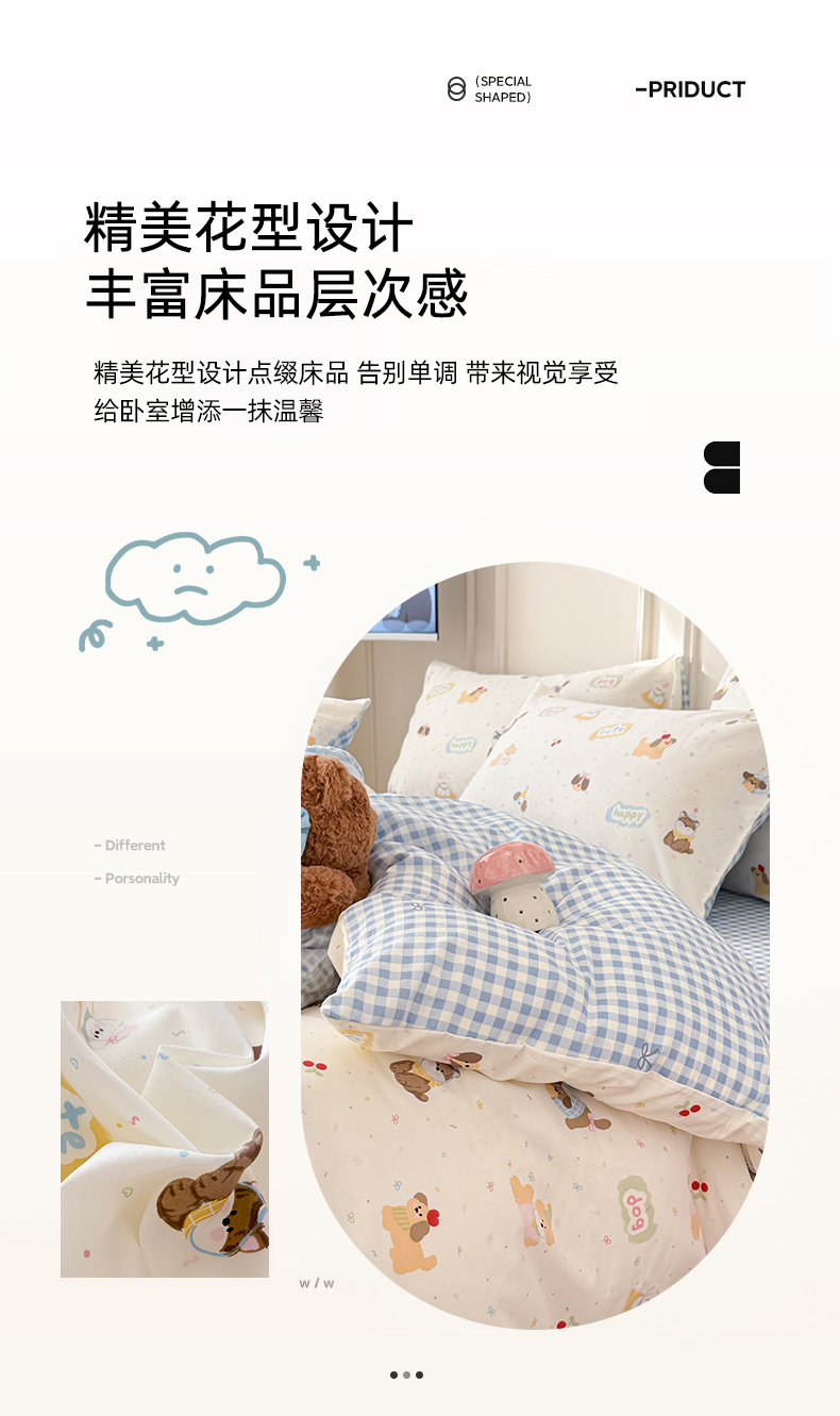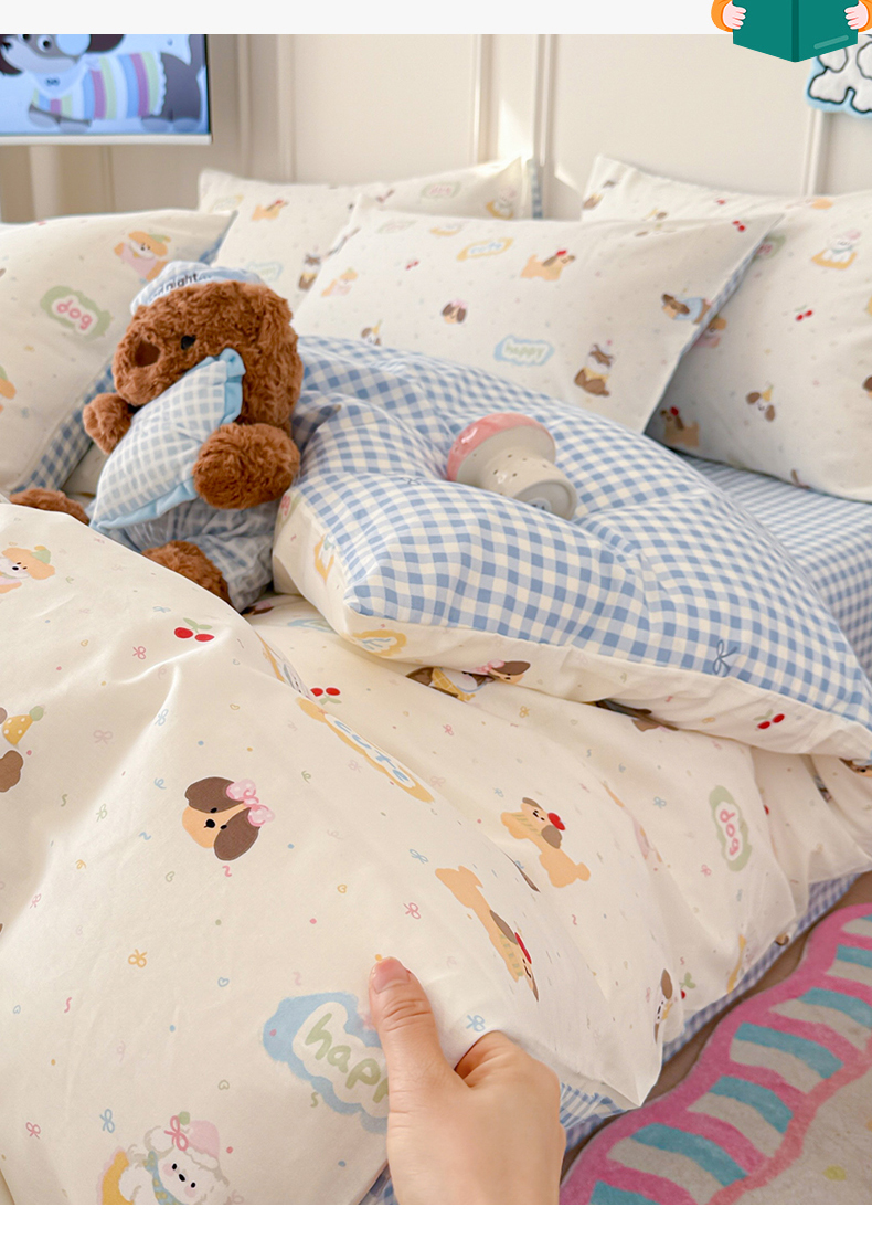 当前位置: 91家纺网 > 商品网购 > 床品套件 > 四件套 > 全棉普通四件套 > 女子家纺 2026新款全棉纯棉12868卡通印花四件套 蝴蝶结萌宠