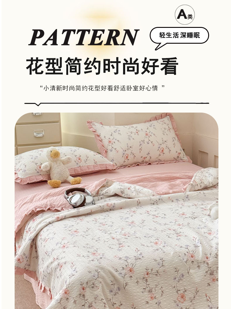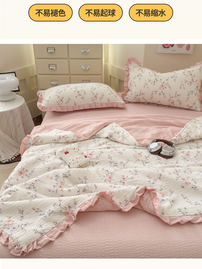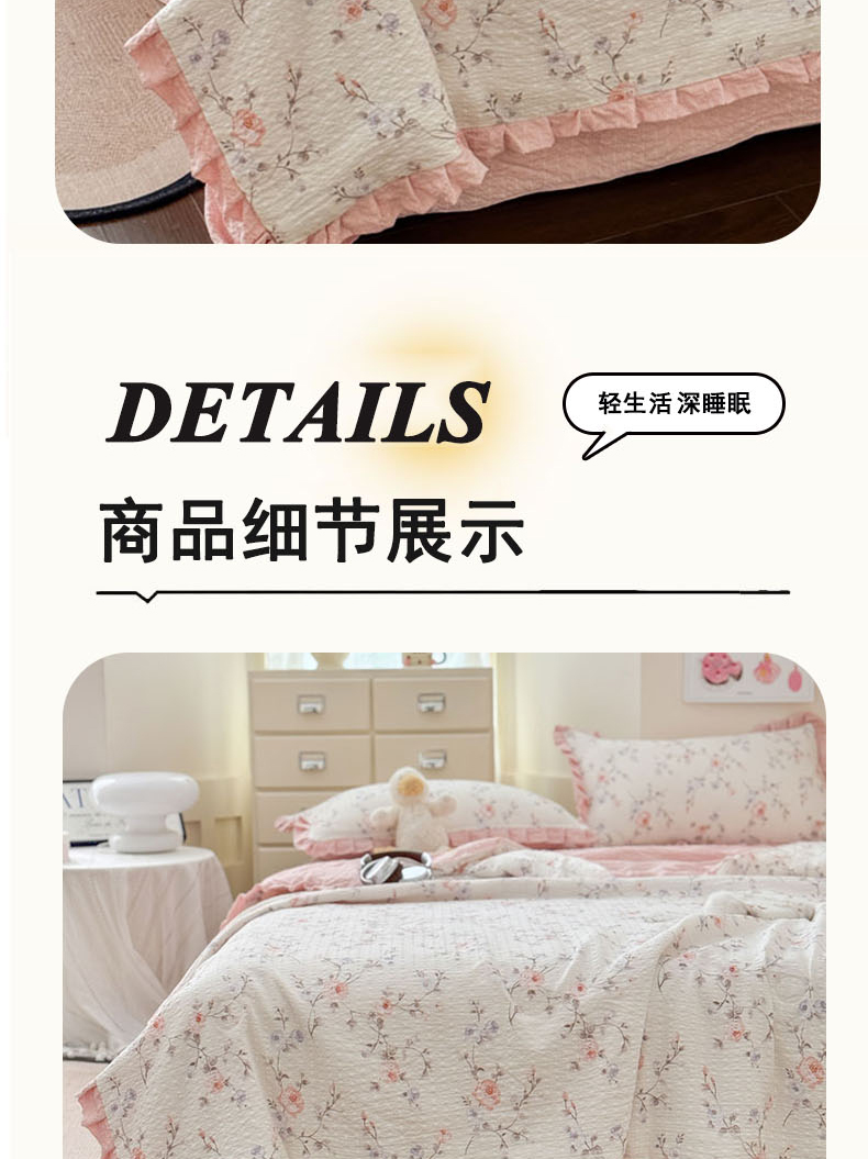 (总)迪梦姿家纺 2026新款泡芙纱花边款夏被四件套,纯宅熊,躲猫猫,旧街星星,可可小猫条,栗色木马纹,满堂红樱花粉,萌物条条,浅夏花信,田园兔,甜喵块块,甜心咖絮,甜心木马卷,兔仔花田,小兔裙边,悦悦小兔,只闻花香,紫雾花蝶集