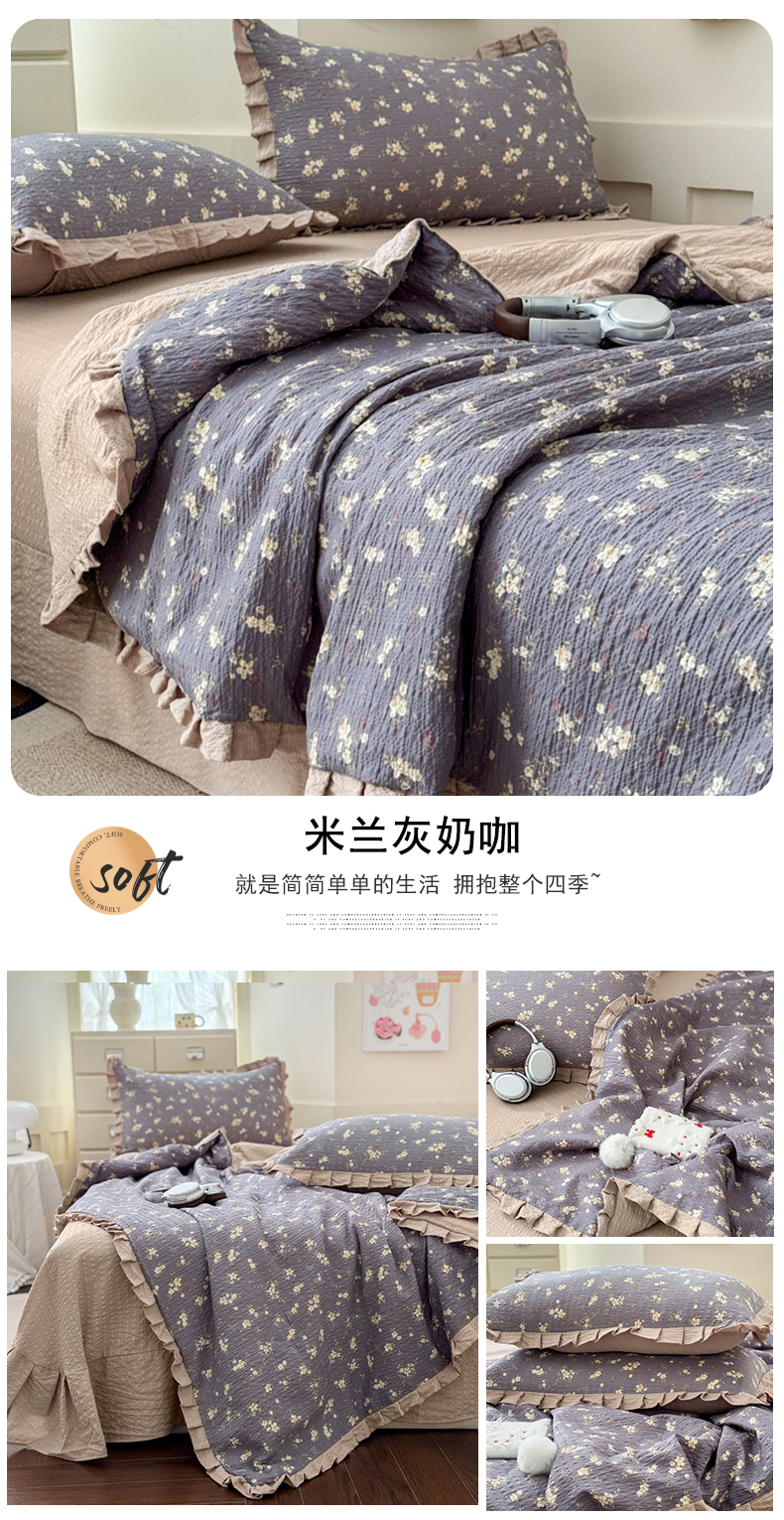 迪梦姿家纺 2026新款泡芙纱花边款夏被四件套-款式二 初柠奶咖