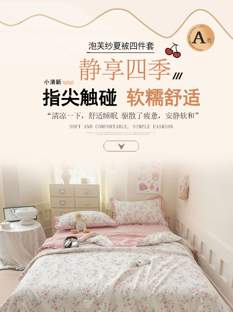 (总)迪梦姿家纺 2026新款高克重泡芙纱泡泡纱床盖款四件套系列,紫雾花蝶集,灰樱桃,春日甜桃心米,纯宅熊,猫咪集粉,躲猫猫,花野兔眠,旧街星星,莓系花伐,描线小猫咖,木马小花团,浅沙花影黄,浅沙花影蓝,田园兔,甜喵块块,甜心咖絮,甜心木马卷,兔仔花田,小兔裙边,星野蝴蝶结,悦悦小兔,只闻花香