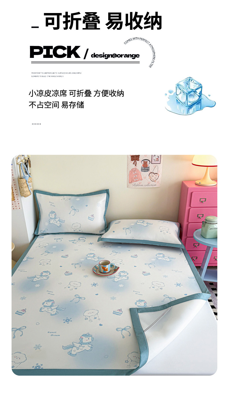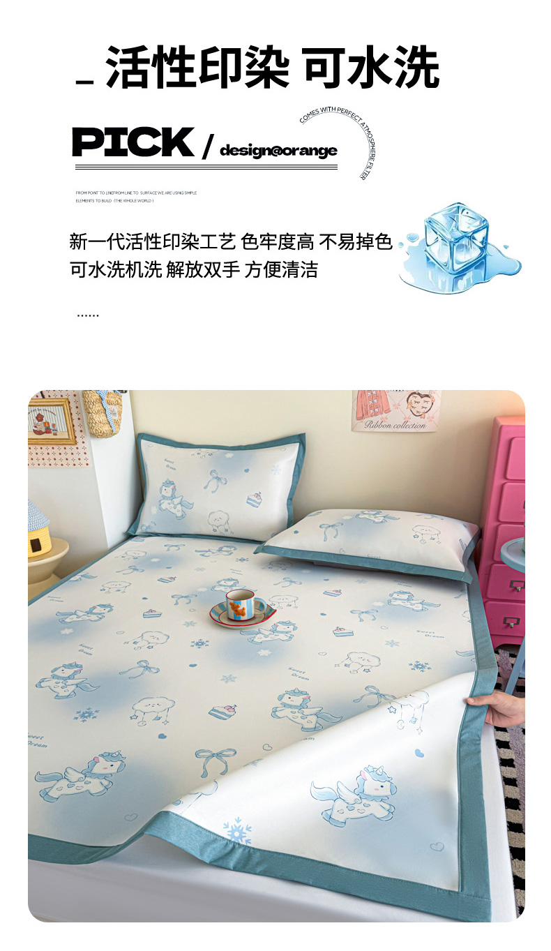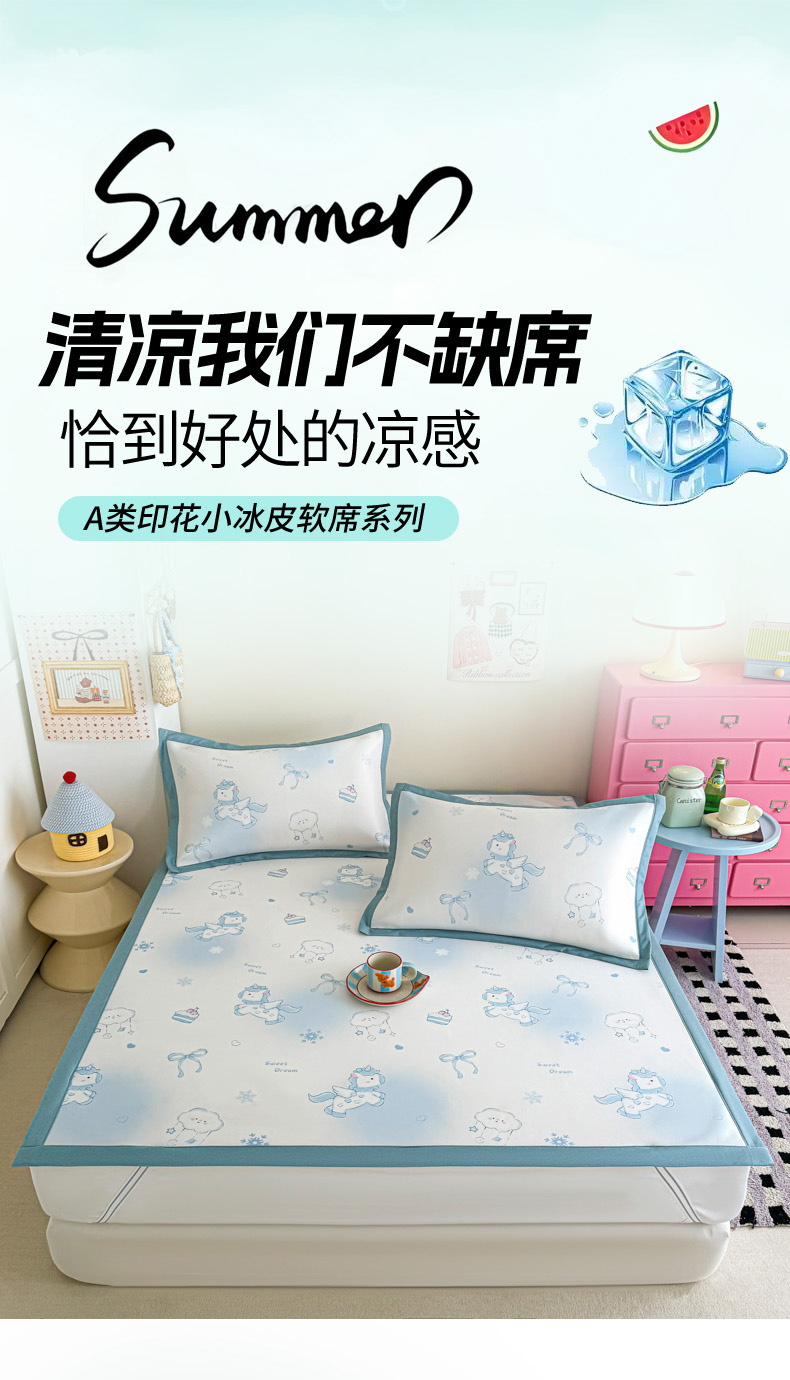 商品名称:倾慕家纺 2026春夏新款A类印花小冰皮软席凉席席子 云朵小马