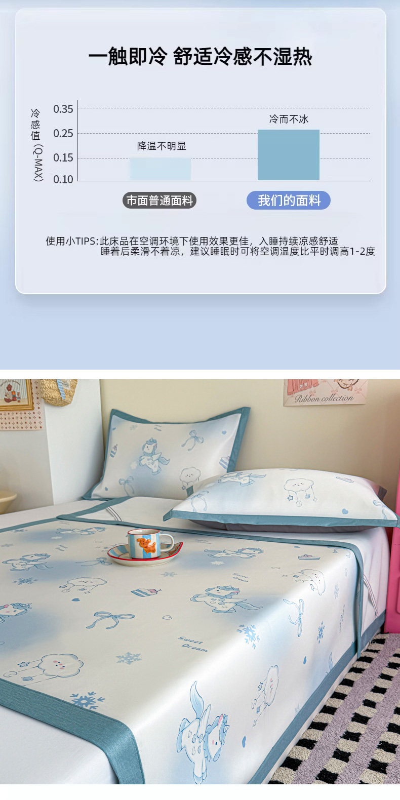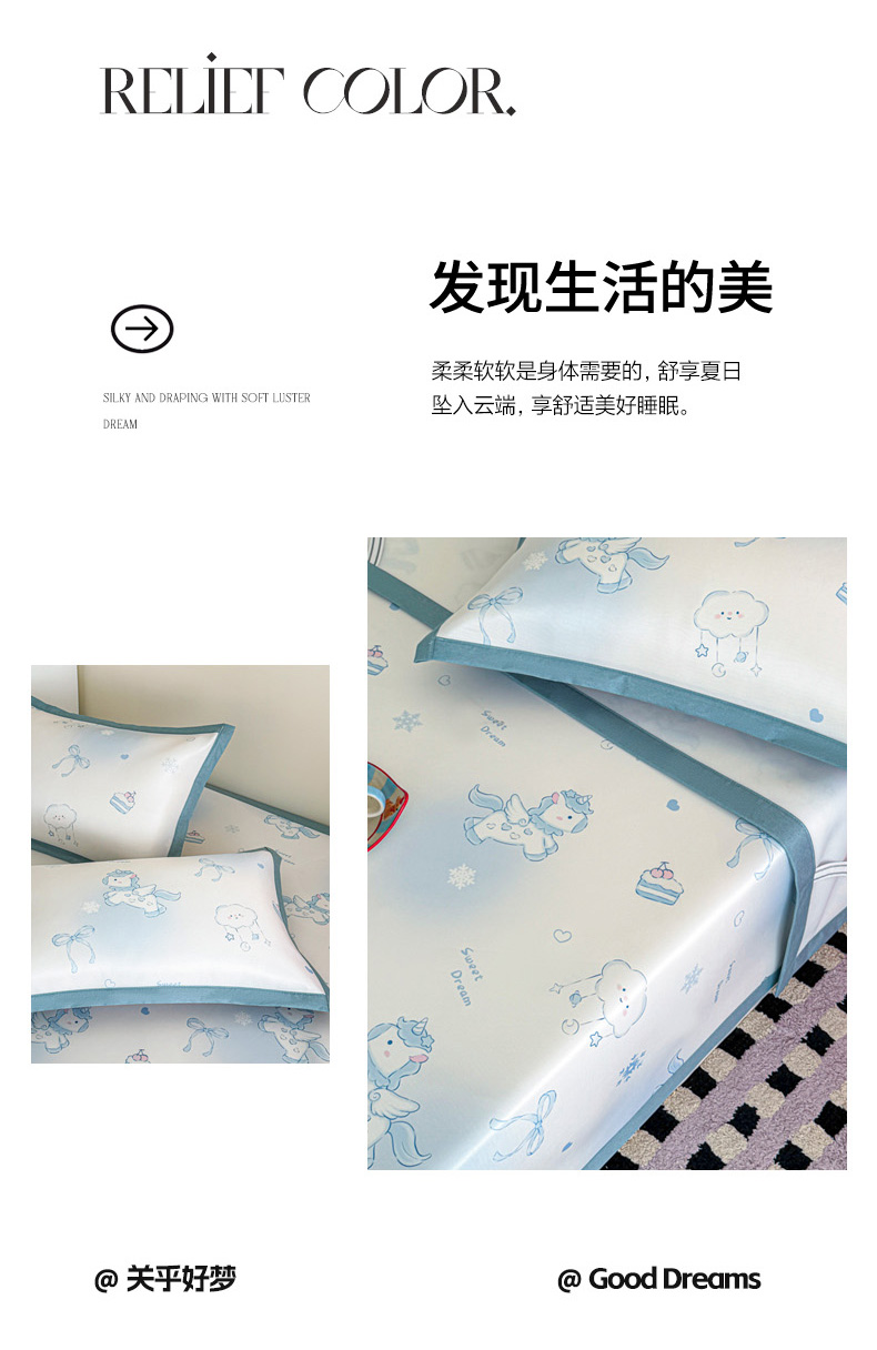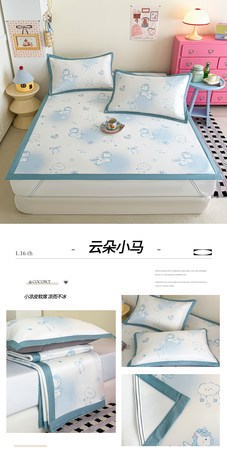 商品名称:倾慕家纺 2026春夏新款A类印花小冰皮软席凉席席子 云朵小马