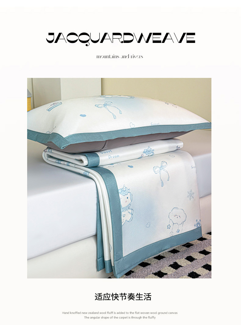 (总)倾慕家纺 2026新款A类满天星提花凉感凉席系列,缤纷兔,波波小龙,波浪彩龙,哈皮龙,开心兔,蓝色爱恋,乐动猫咪,律动小球,森林龙宝宝,条纹狗狗,小猫侠,小森林,叶小兔,PP熊猫