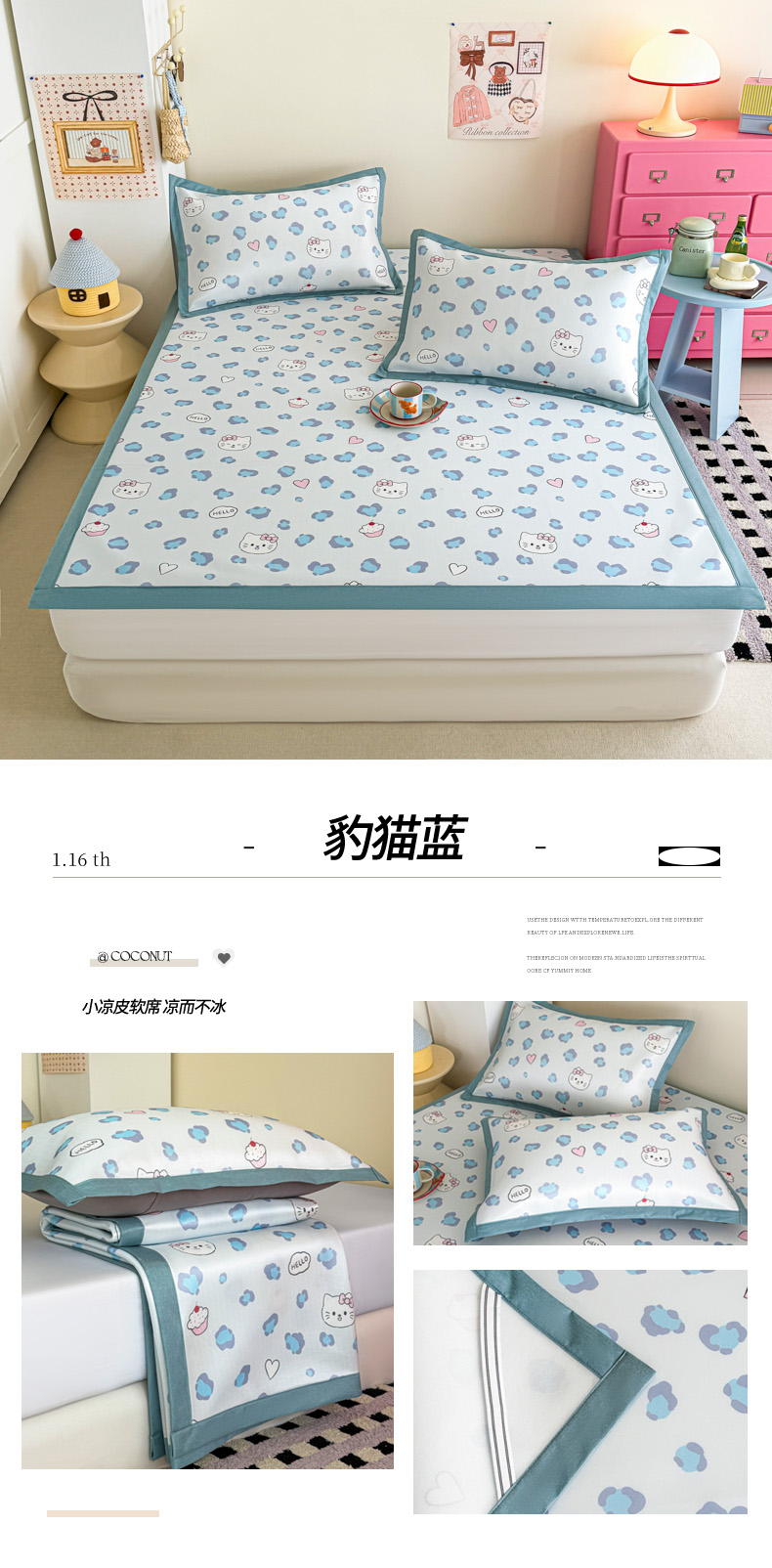 (总)倾慕家纺 2026春夏新款A类印花小冰皮软席凉席席子,组合图仅供展示不可下单,豹猫粉,豹猫蓝,贝壳鲸鱼,冰雪企鹅,蛋糕小兔,云朵小马