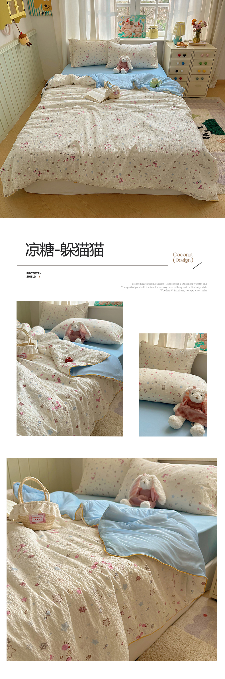 商品名称:初念 2026新款泡芙纱单夏被凉糖系列(凉而不冰的触感,清凉与柔软兼得) 凉糖-躲猫猫
