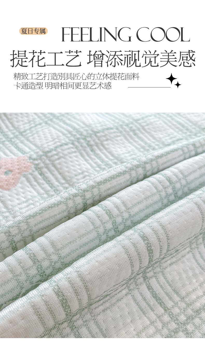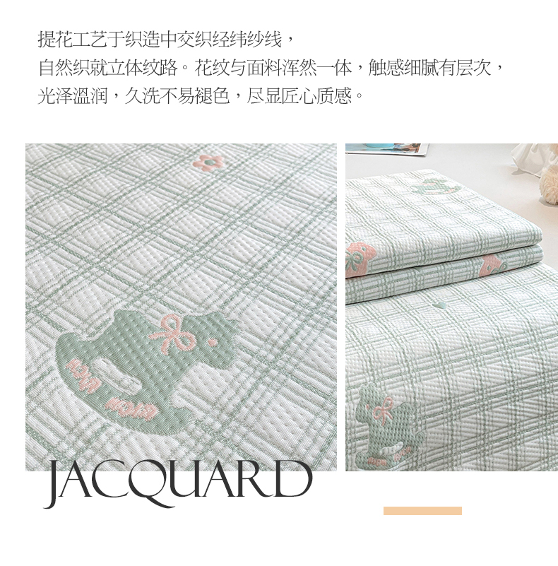 情恒家纺 2026新款PE卡通提花床盖席席子凉席三件套摇摇马 摇摇马-豆绿