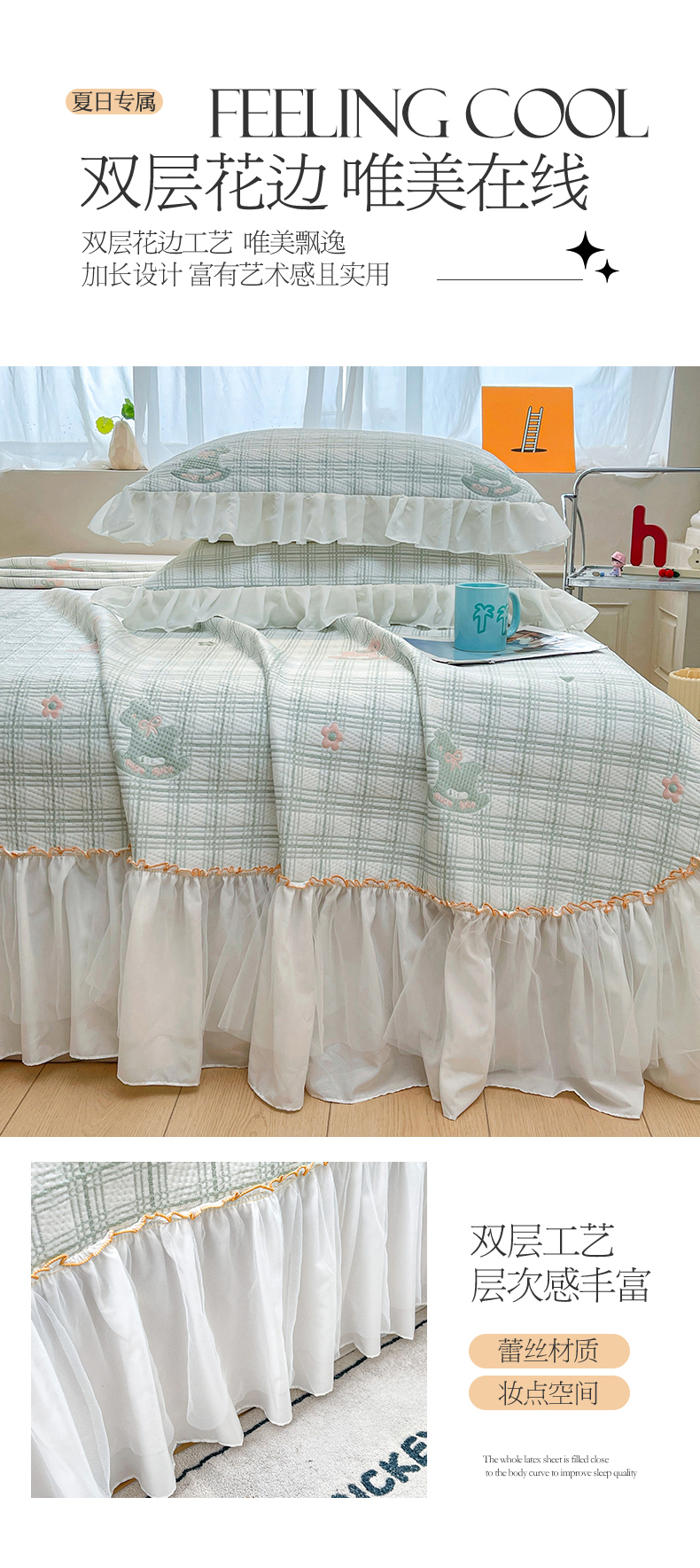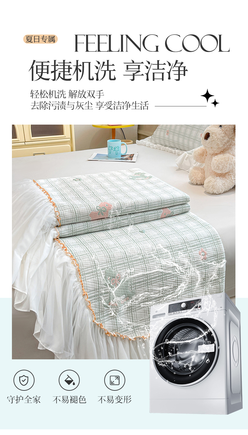 (总)情恒家纺 2025新款凉感豆豆床盖款三件套(淡雅竹香),冰川蓝,星耀灰,树莓粉,牛油果绿,雾蓝