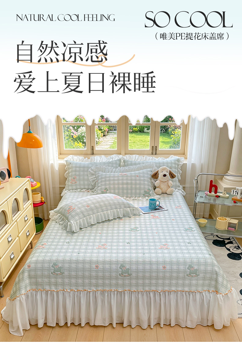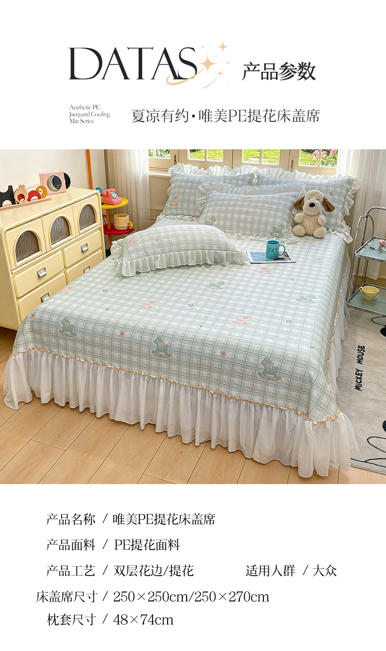 (总)情恒家纺 2026春夏新款PE提花肌理纹床笠式床裙席凉席席子-安娜,安娜-豆沙粉,安娜-抹茶绿,安娜-深远灰,安娜-晚安蓝,安娜-星辰灰