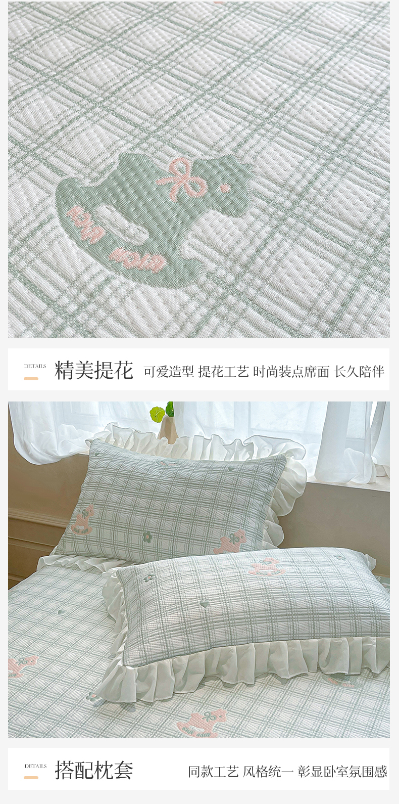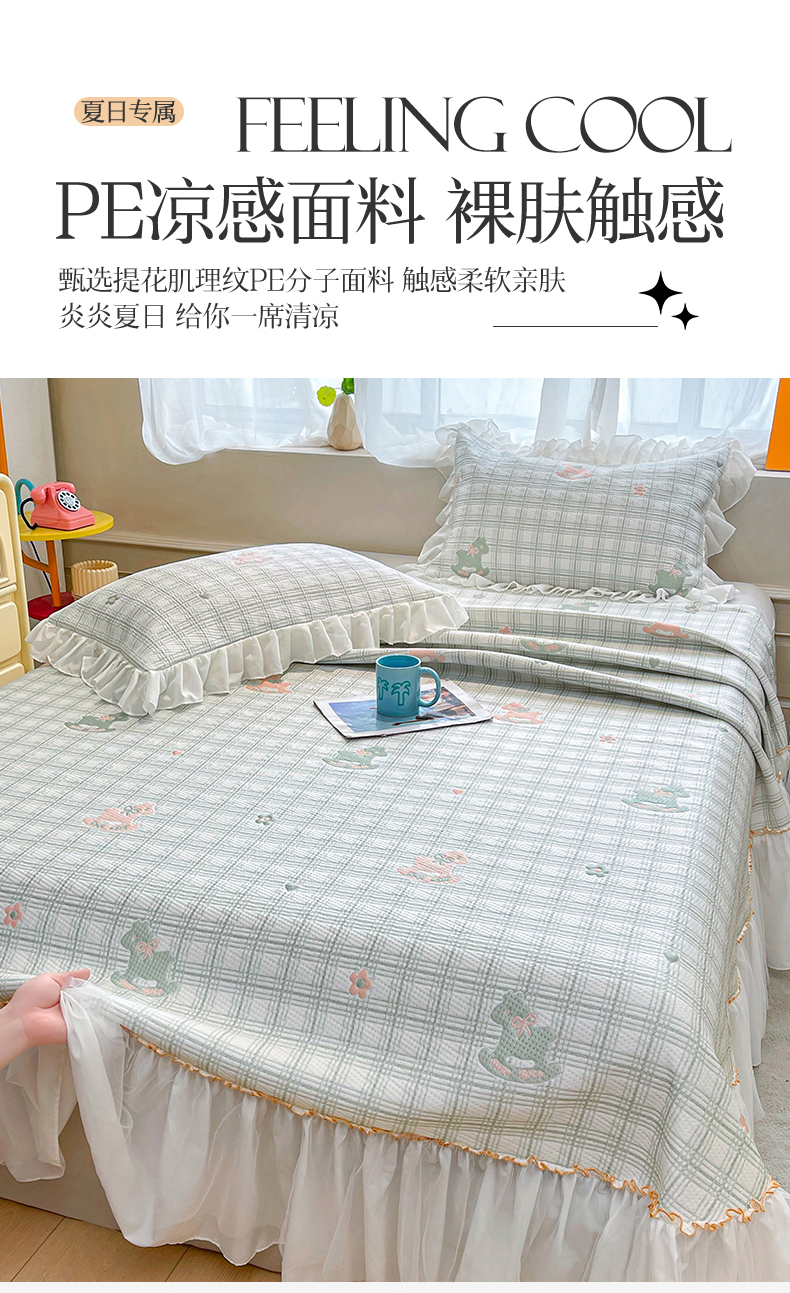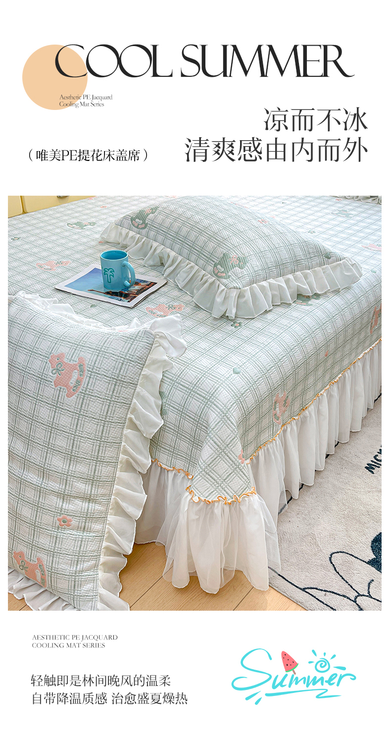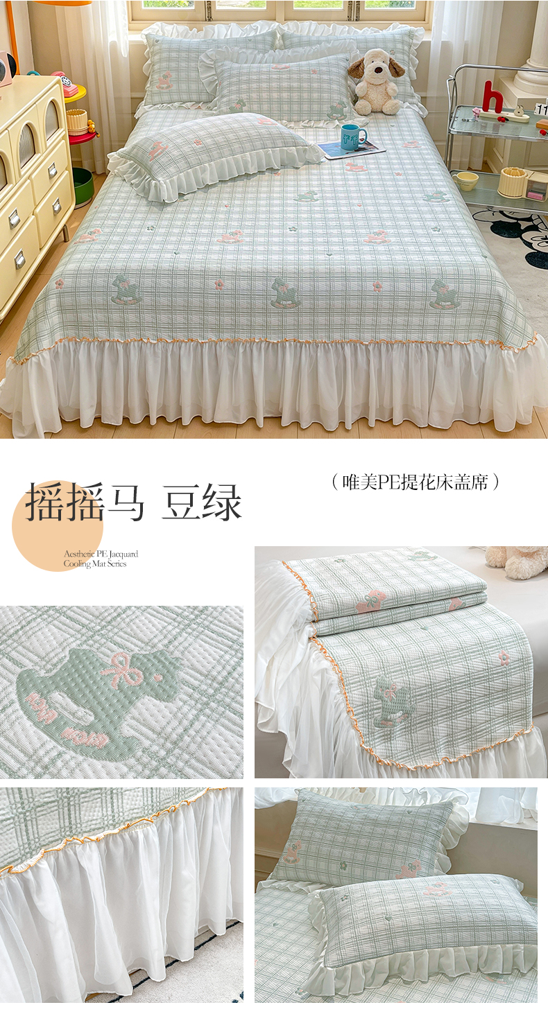 商品名称:情恒家纺 2026新款PE卡通提花床盖席席子凉席三件套摇摇马 摇摇马-豆绿