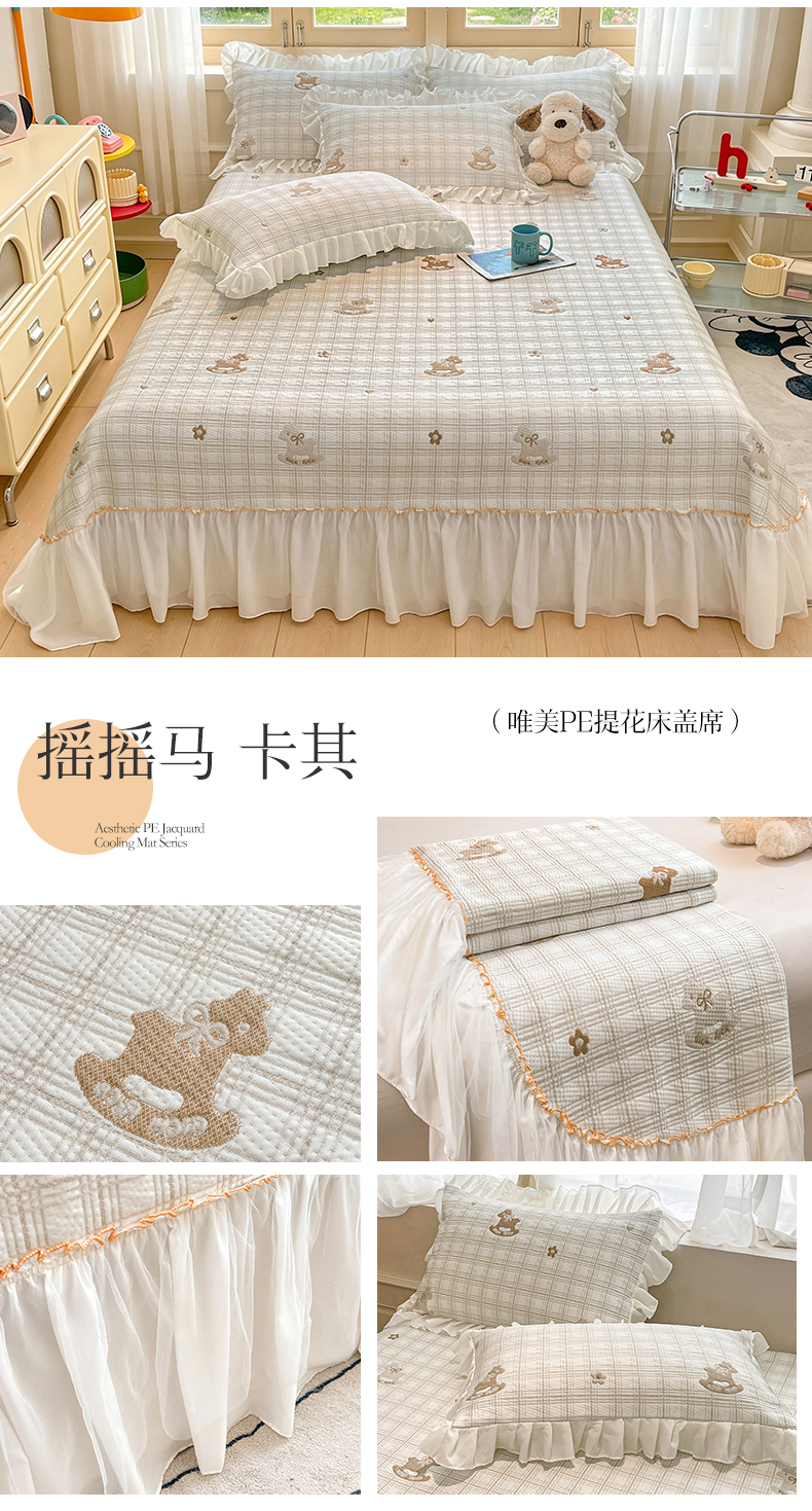 (总)情恒家纺 2026新款卡通摇摇马PE提花床裙席席子凉席三件套,摇摇马-冰蓝,摇摇马-豆绿,摇摇马-卡其,摇摇马-嫩粉,摇摇马-曜黑