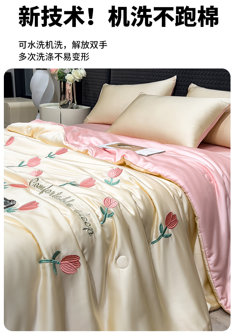 • 91家纺网 家纺一手货源 找家纺 爱彼家纺 2026夏季新款水洗冰丝轻奢刺绣凉感夏被夏凉被空调被 花朵-奶白粉 91家纺网 家纺一手货源 找家纺 爱彼家纺 2026夏季新款水洗冰丝轻奢刺绣凉感夏被夏凉被空调被 花朵-奶白粉