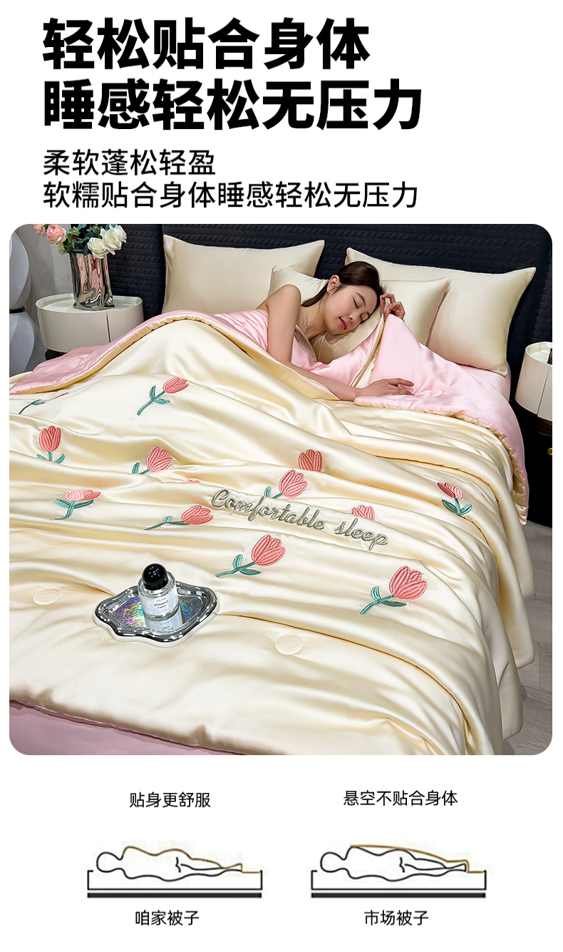 当前位置: 91家纺网 > 商品网购 > 被子 > 夏被 > 爱彼家纺 2026夏季新款水洗冰丝轻奢刺绣凉感夏被夏凉被空调被 花朵-奶白粉