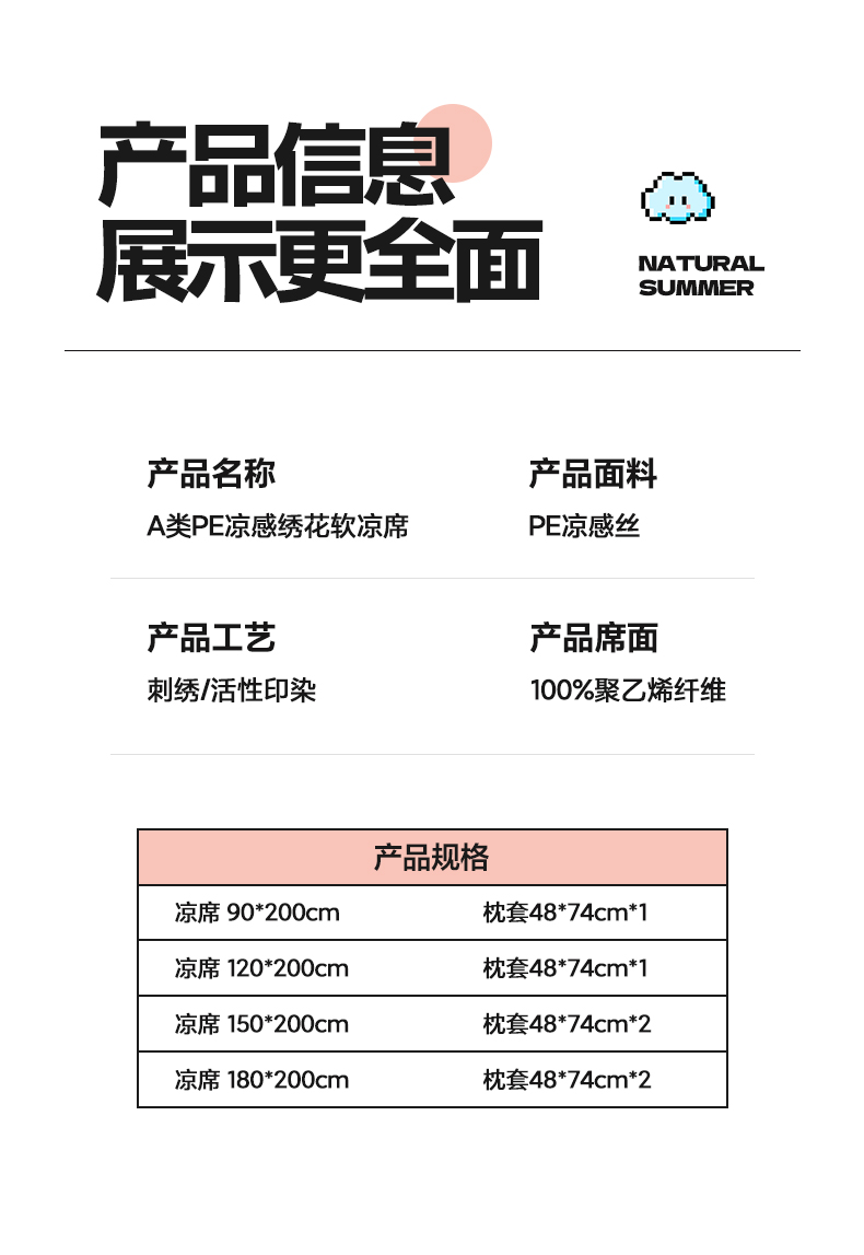 180x200cm凉席+枕套一对