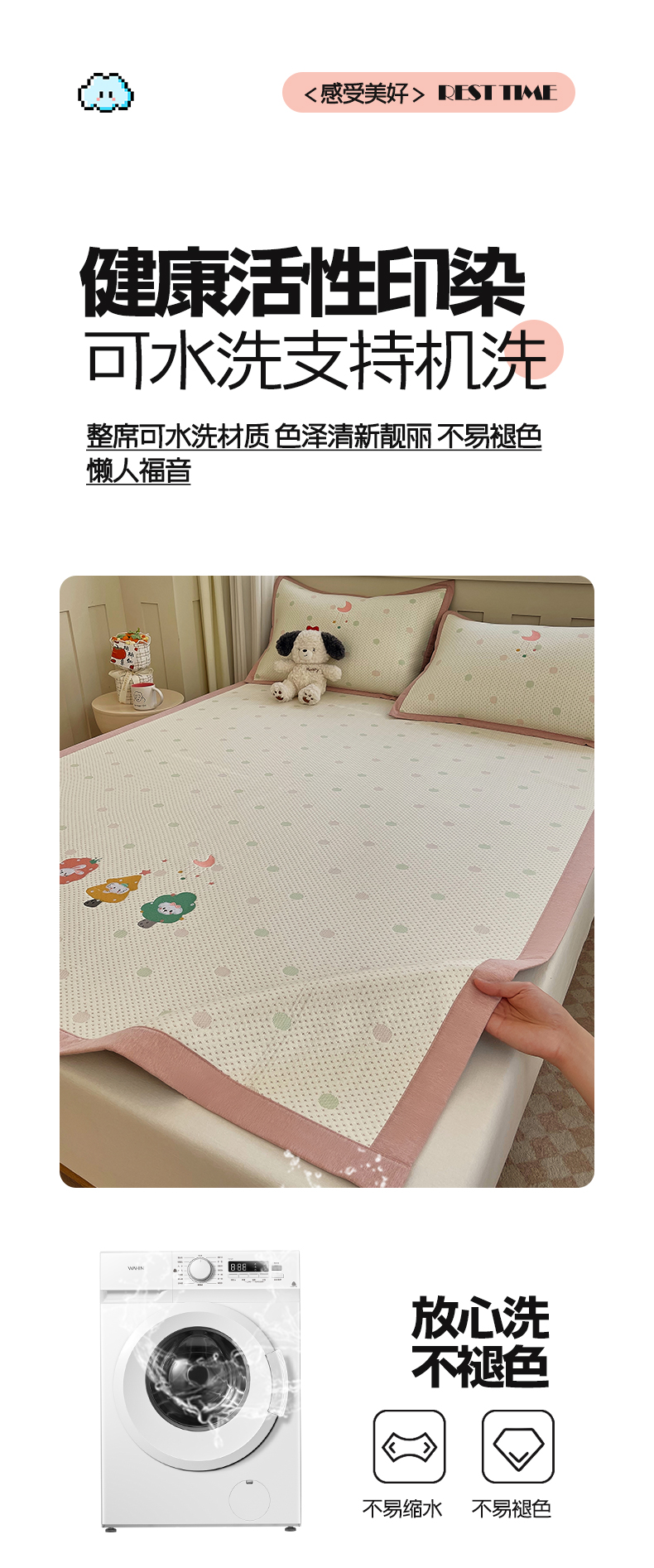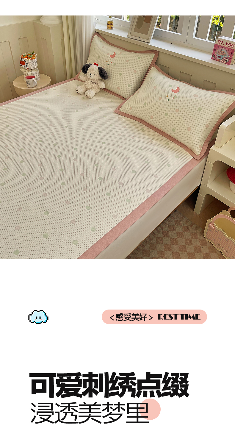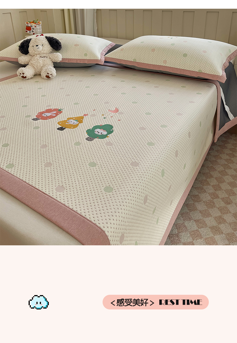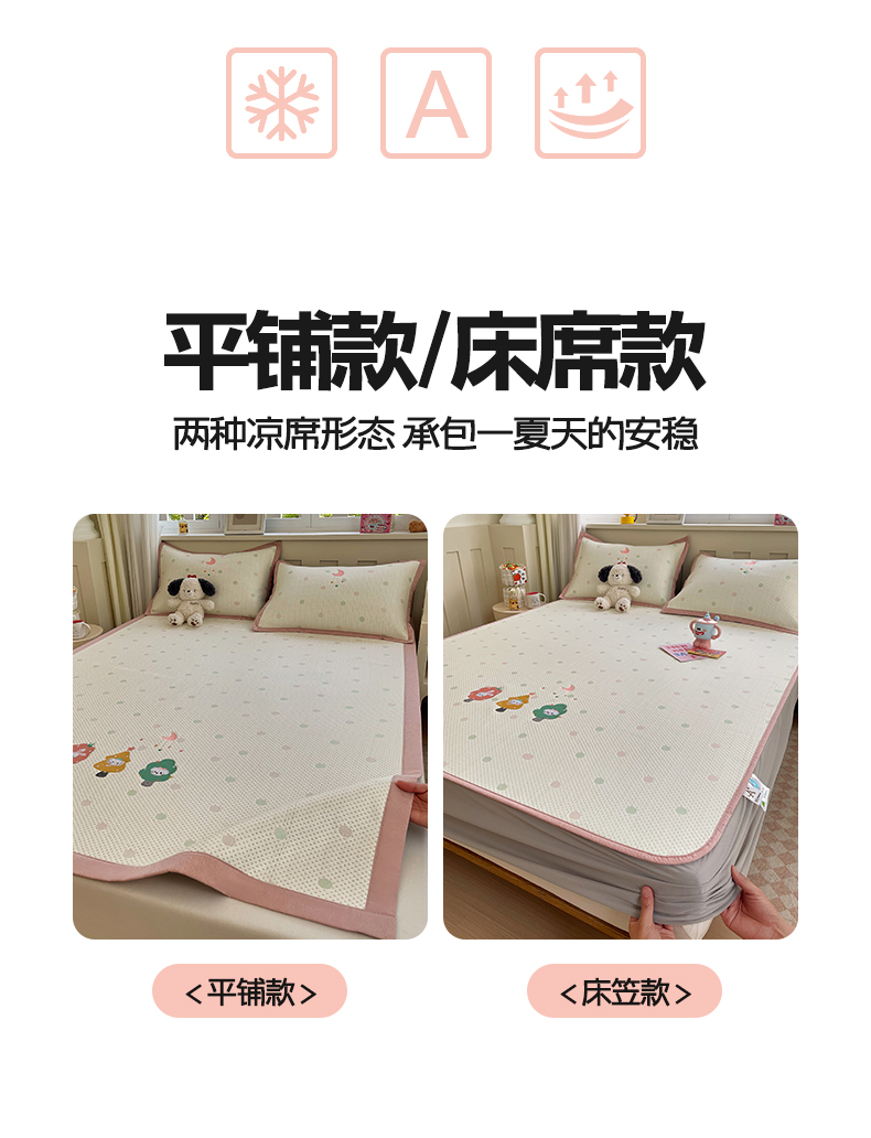 (总)帅露家纺 2026新款A类PE中分子卡通大版绣花软凉席席子,床笠款-波点日记,床笠款-粉屿森林,床笠款-蓝调企鹅,床笠款-懒懒兔,床笠款-星月织梦,平铺款-波点日记,平铺款-粉屿森林,平铺款-蓝调企鹅,平铺款-懒懒兔,平铺款-星月织梦