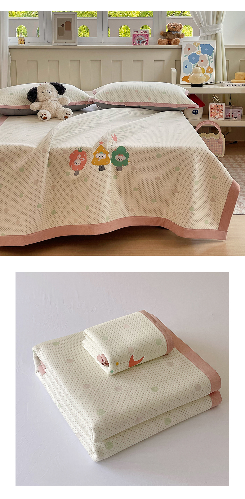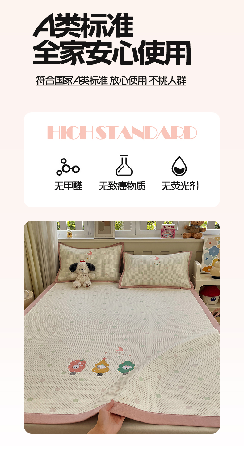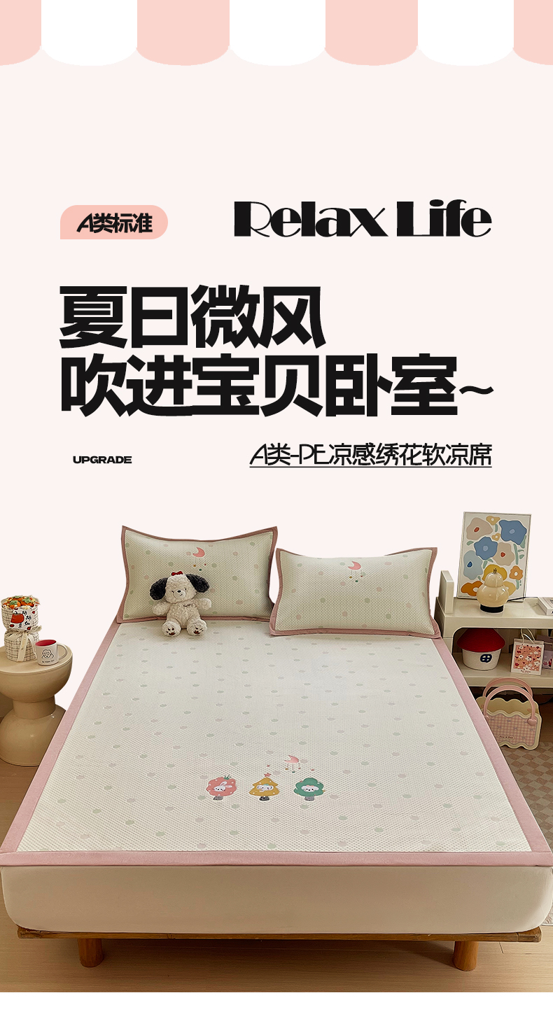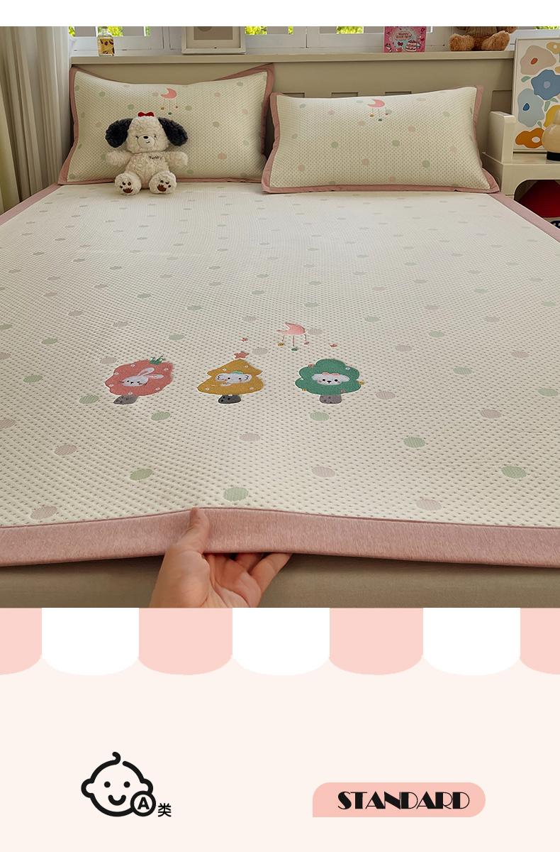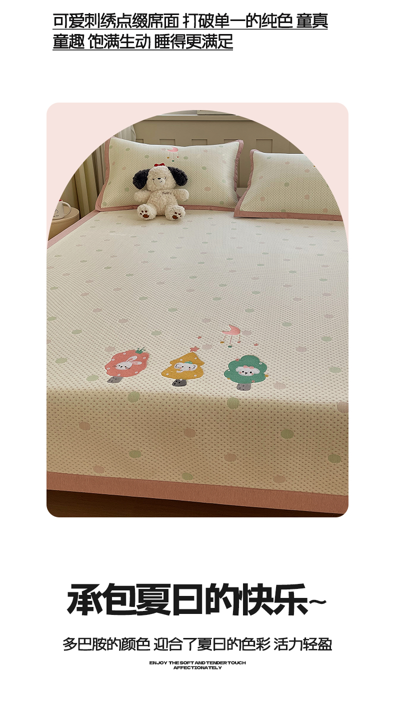 商品名称:帅露家纺 2026新款A类PE中分子卡通大版绣花软凉席席子 平铺款-粉屿森林