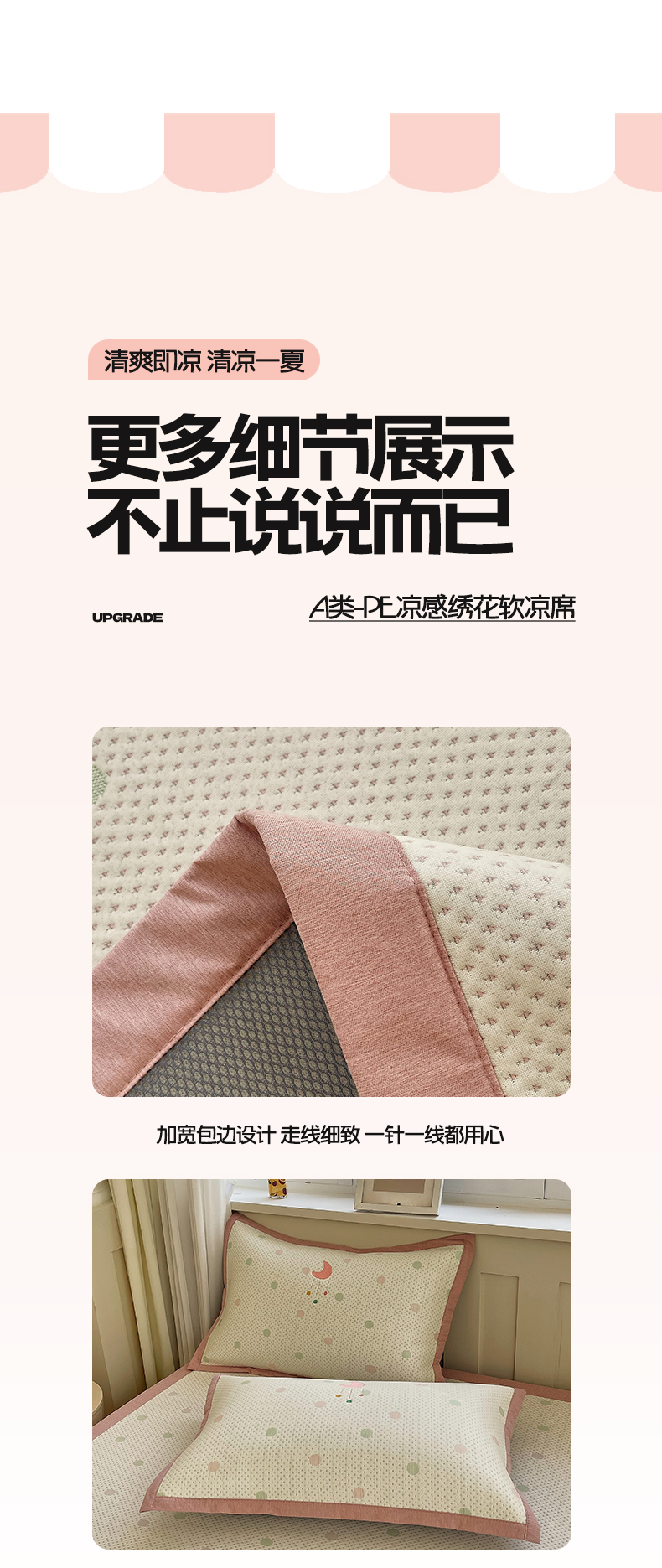 (总)帅露家纺 2026新款A类PE中分子绣花软凉席席子-慢摇时光,床笠款-慢摇时光粉,床笠款-慢摇时光灰,床笠款-慢摇时光蓝,床笠款-慢摇时光绿,平铺款-慢摇时光粉,平铺款-慢摇时光灰,平铺款-慢摇时光蓝,平铺款-慢摇时光绿