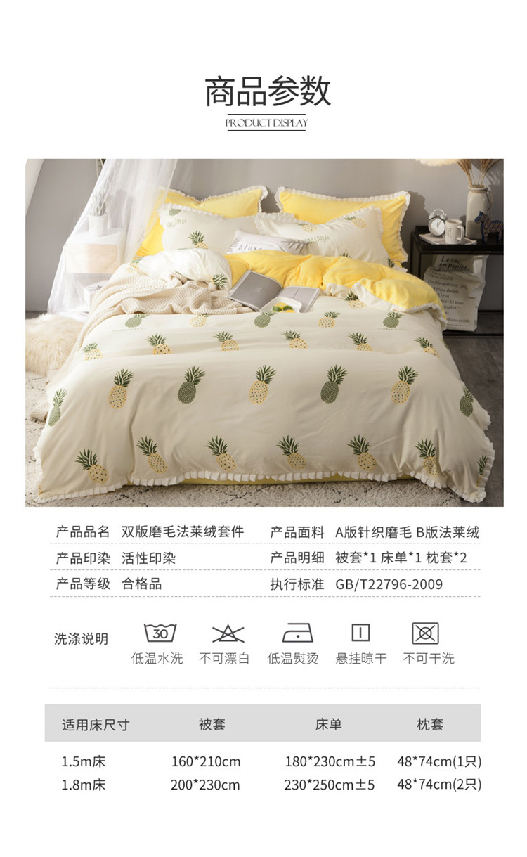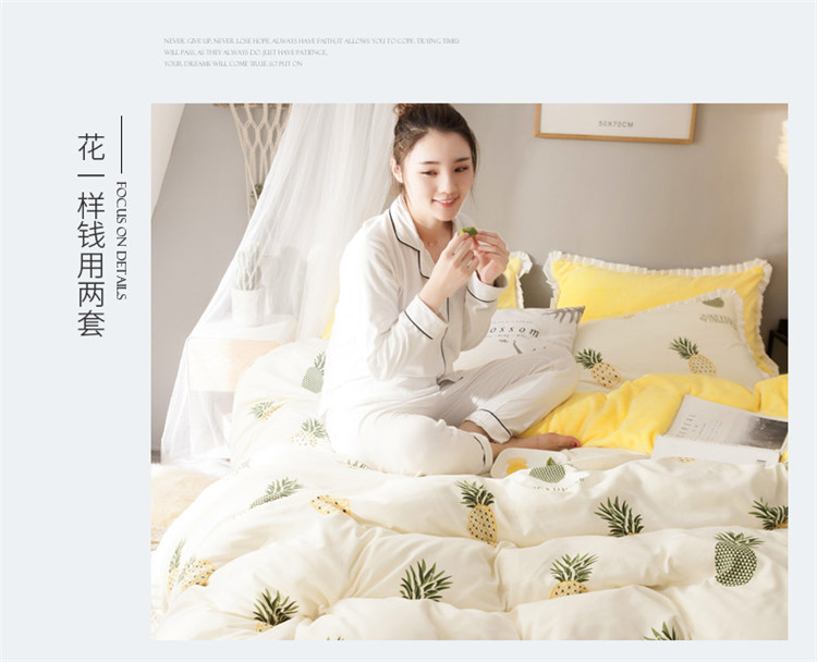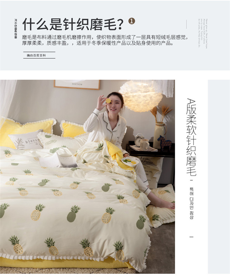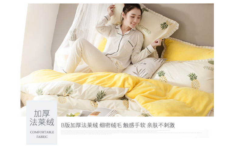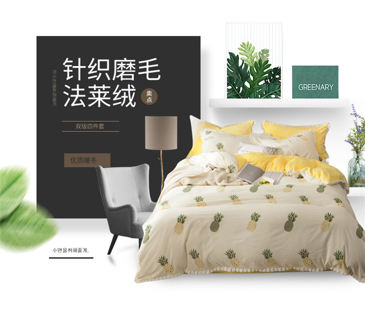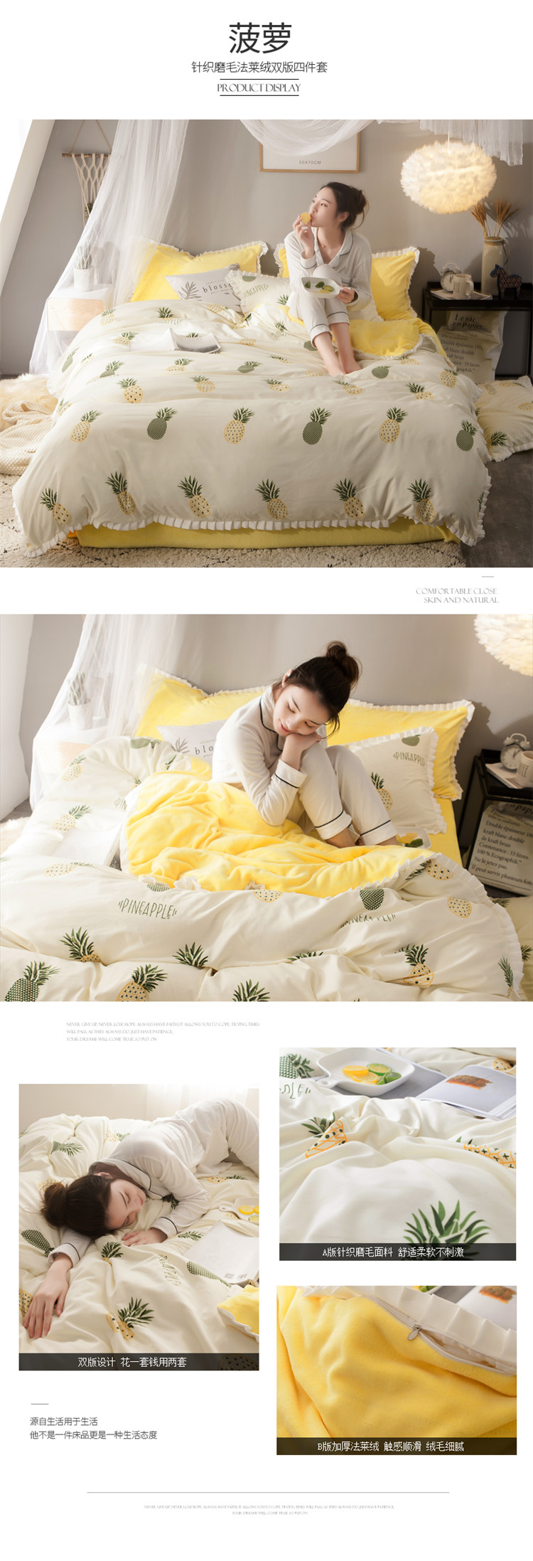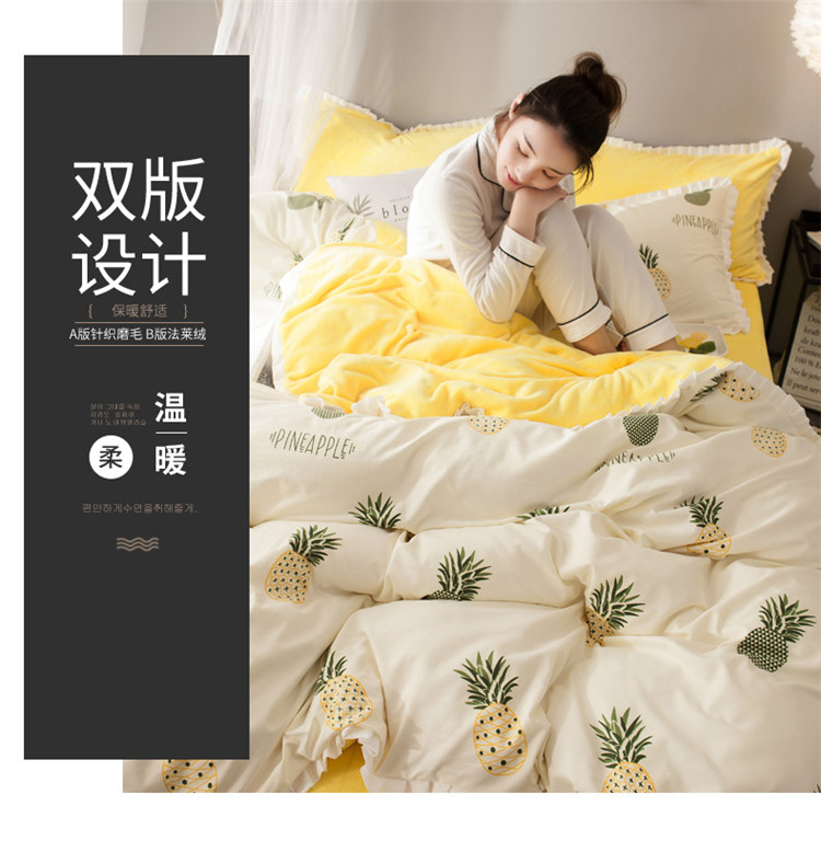 商品名称:涵宸家纺 新款绒-A针织磨毛B绒四件套 菠萝