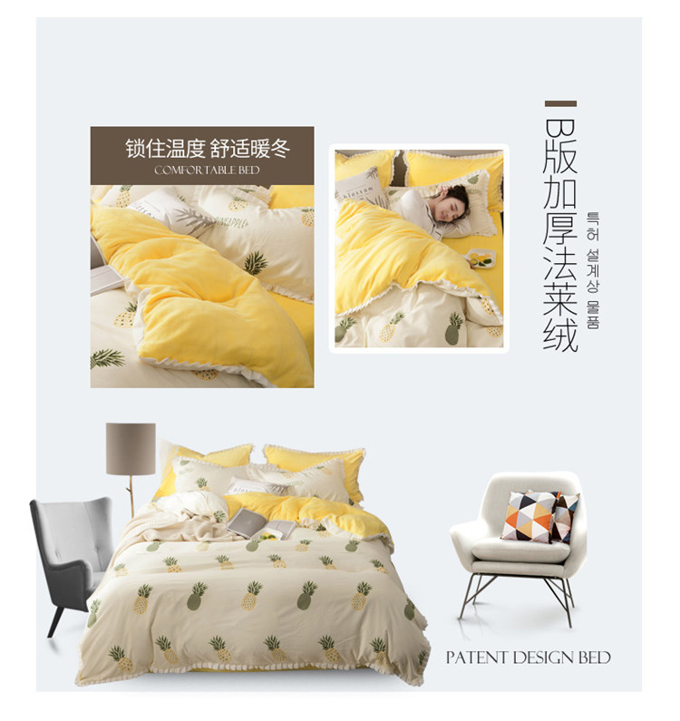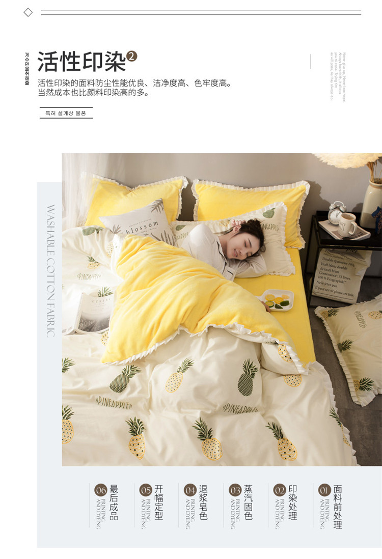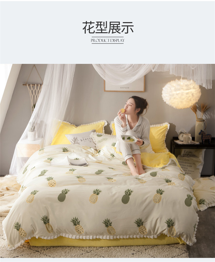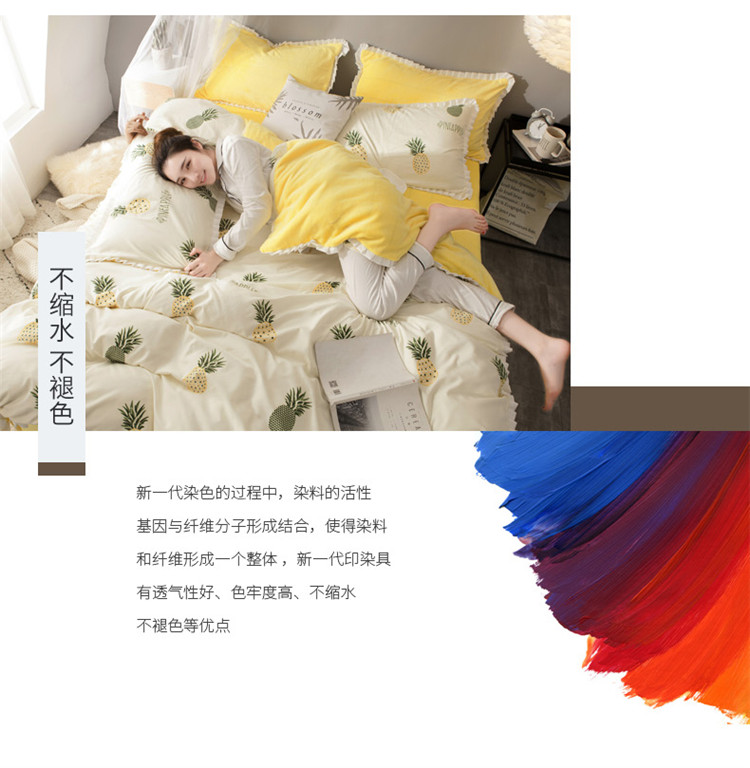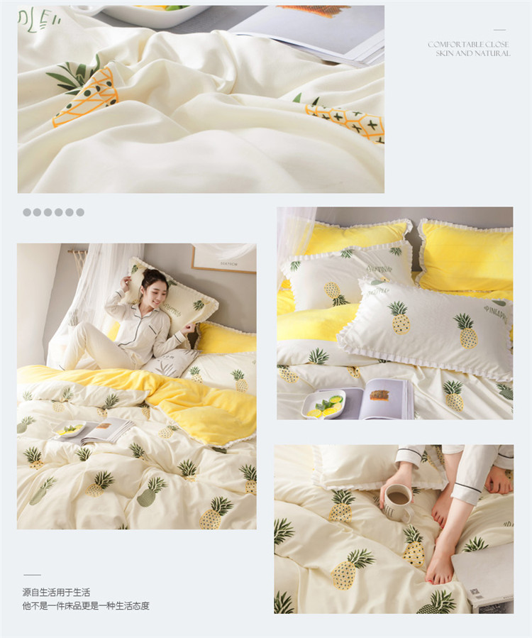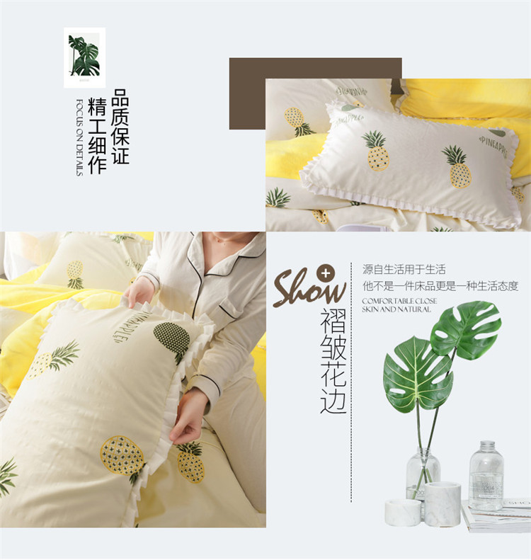 商品名称:涵宸家纺 新款绒-A针织磨毛B绒四件套 菠萝