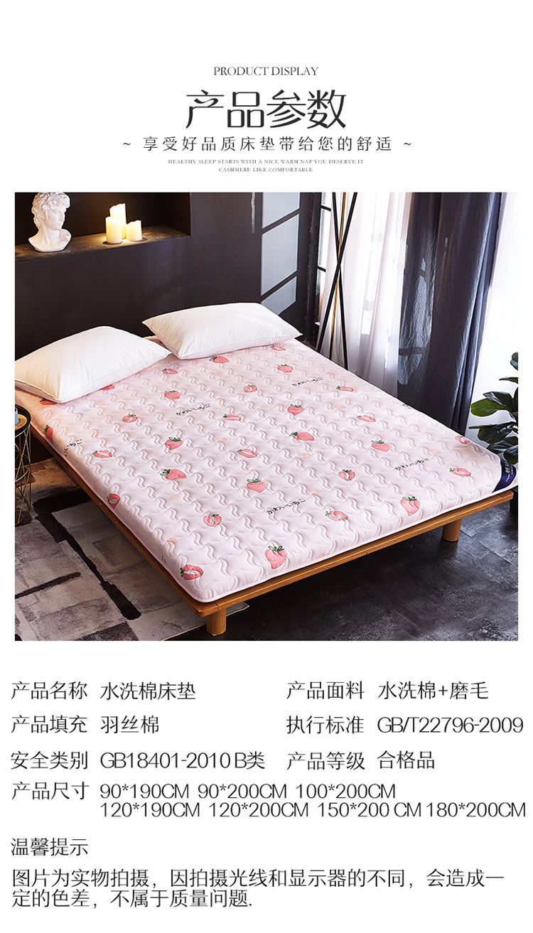 当前位置: 91家纺网 > 商品网购 > 床垫/床褥 > 普通床垫 > 寐珂家纺 2025新款水洗棉床垫 甜心草莓