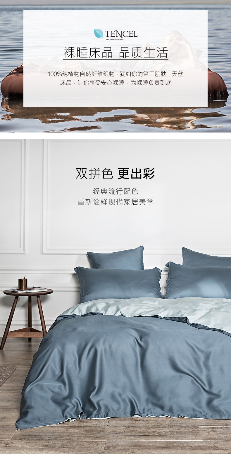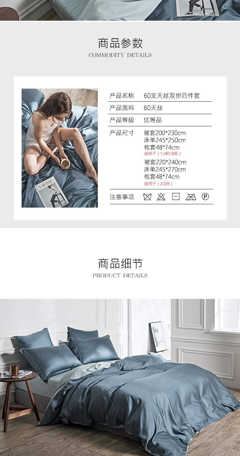商品名称:涞澳 2019新款60天丝双拼套件 青蓝
