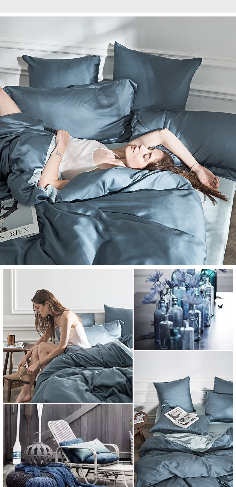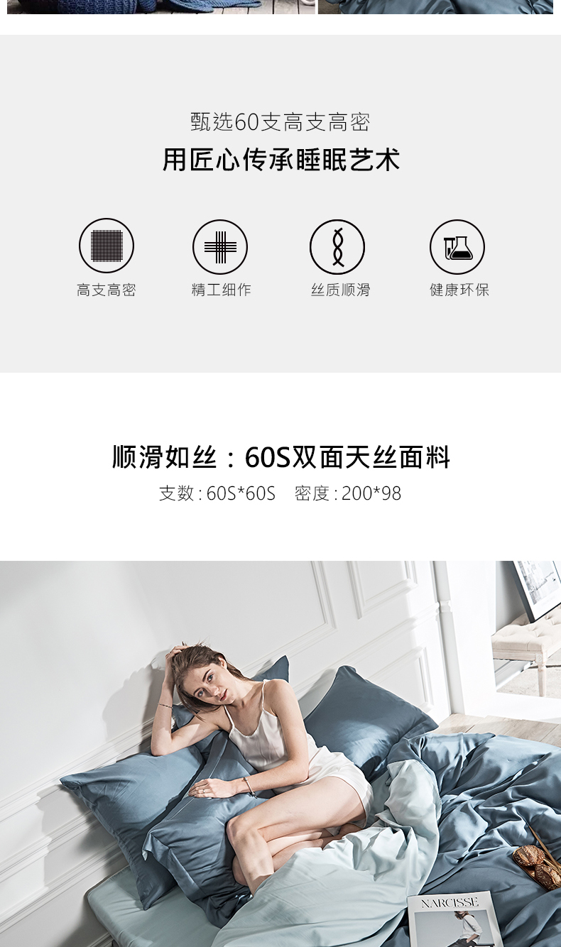 涞澳 2019新款60天丝双拼套件 青蓝