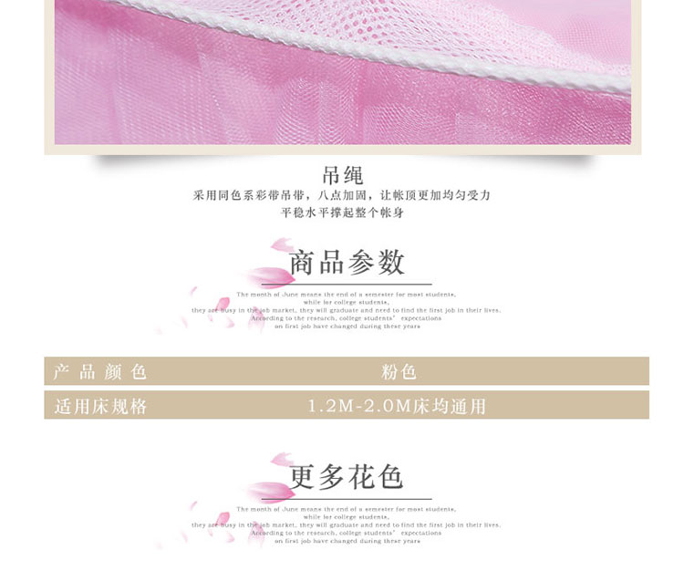 商品名称:冉美家纺 2021新款圆顶蚊帐栀子花粉色