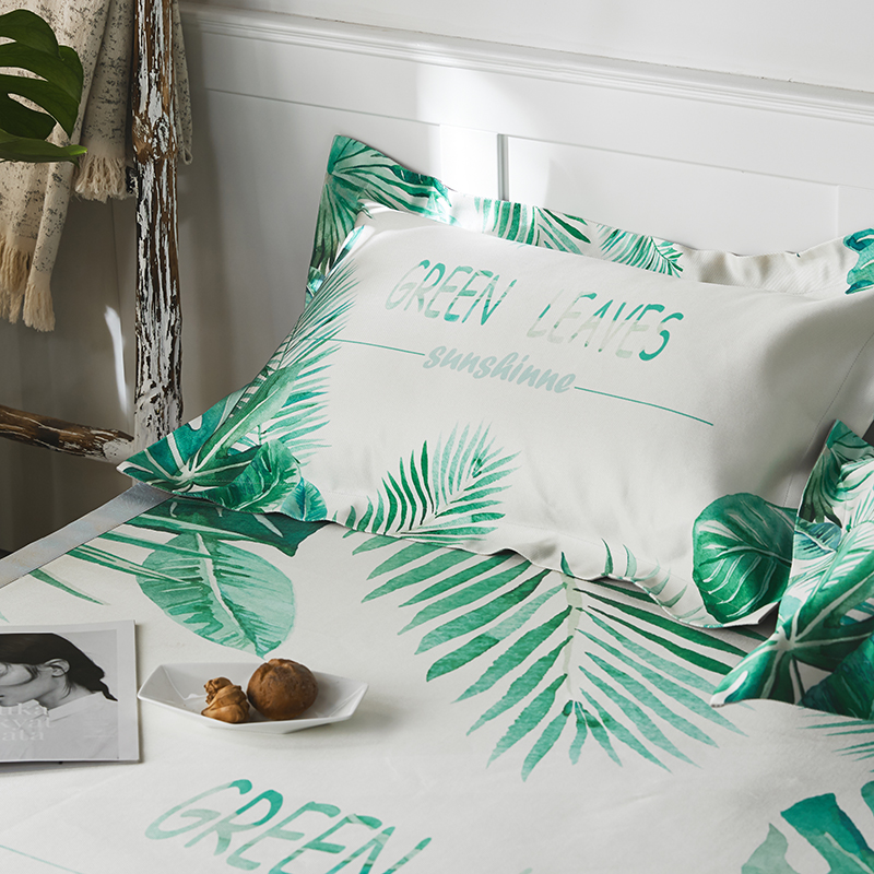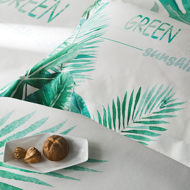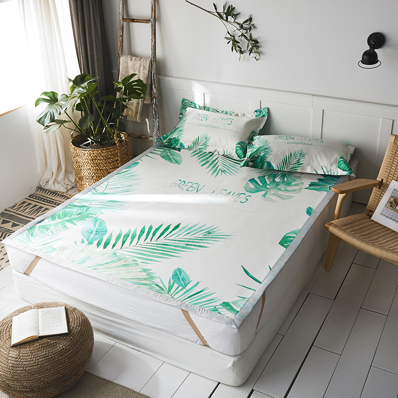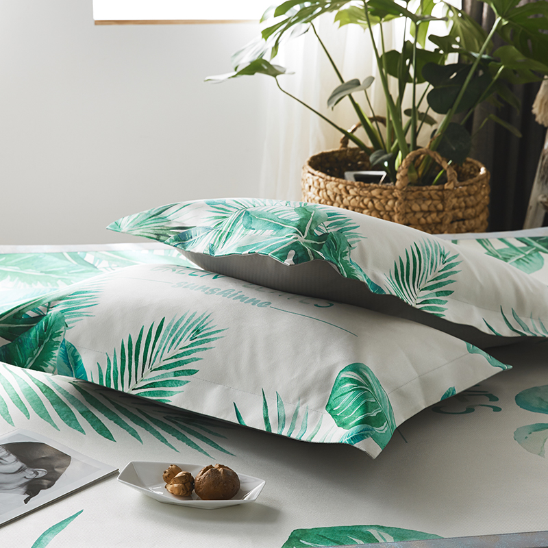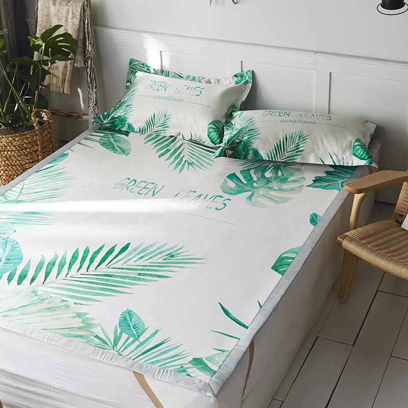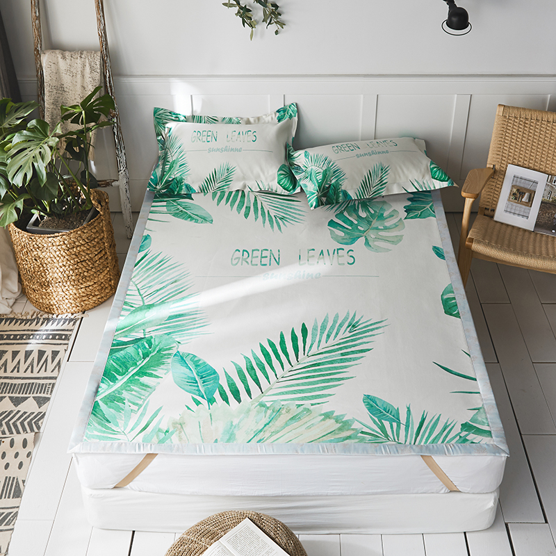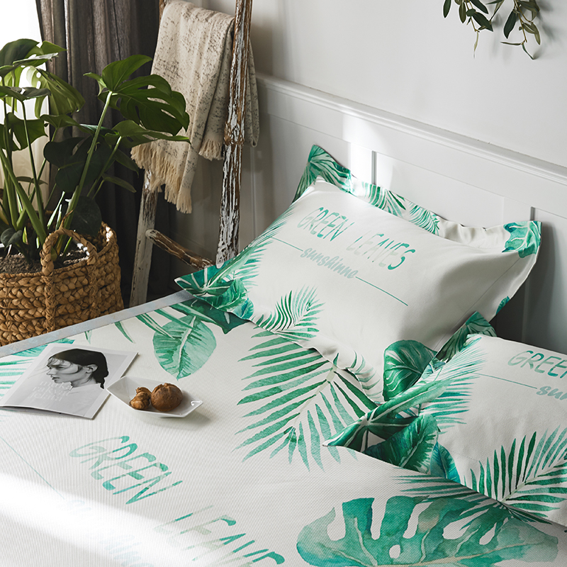 本希 数码印花水洗养生席三件套 绿叶