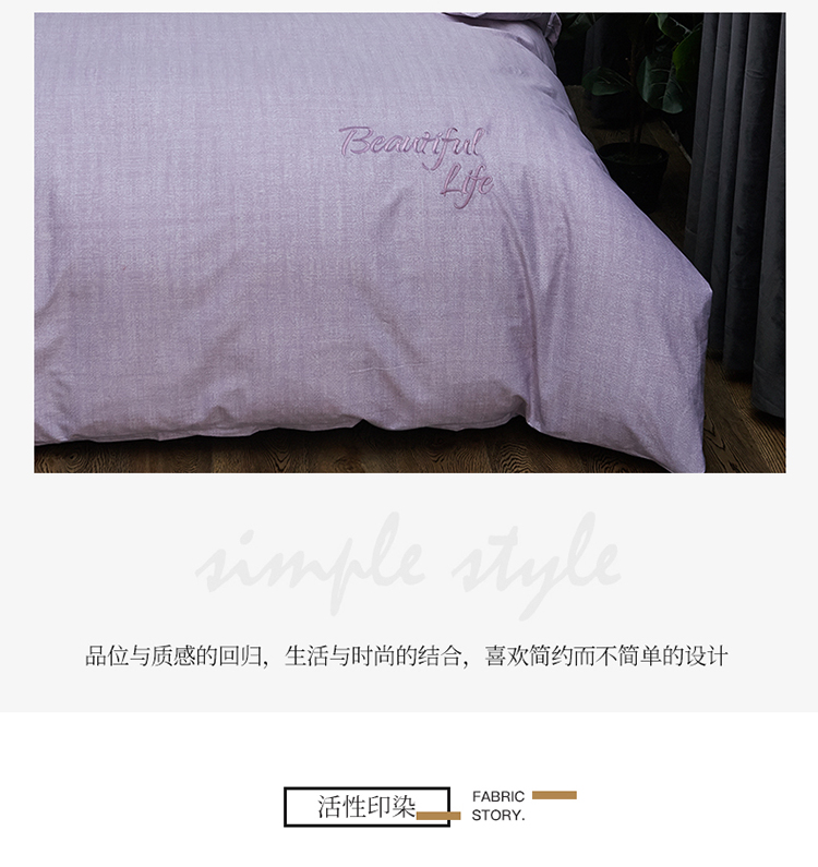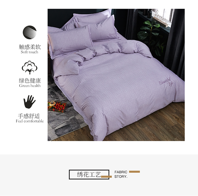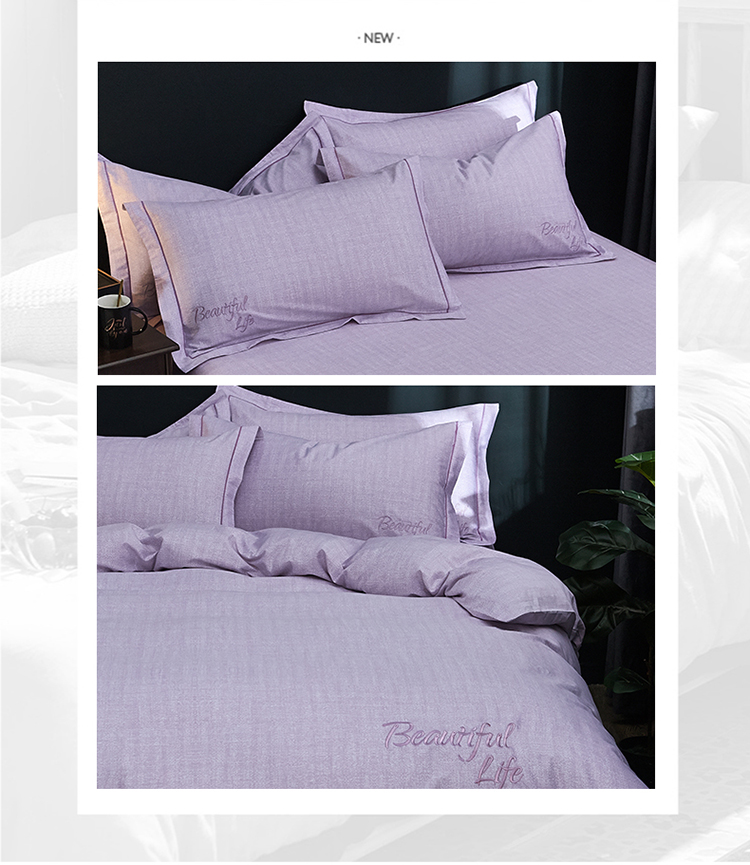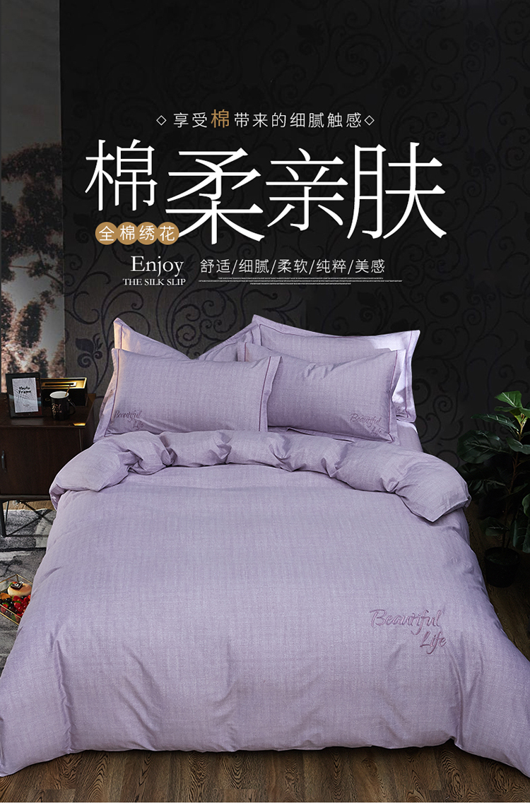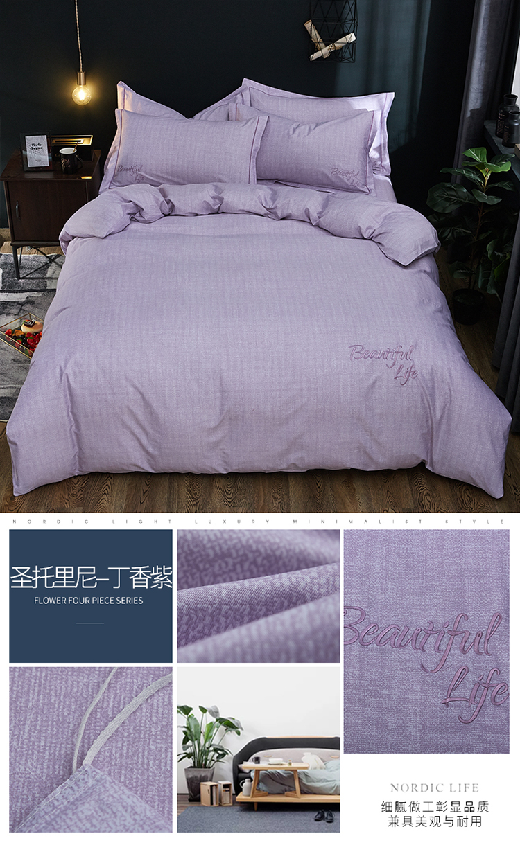 商品名称:雲归梦 北欧简约全棉绣花四件套 圣托里尼-丁香紫