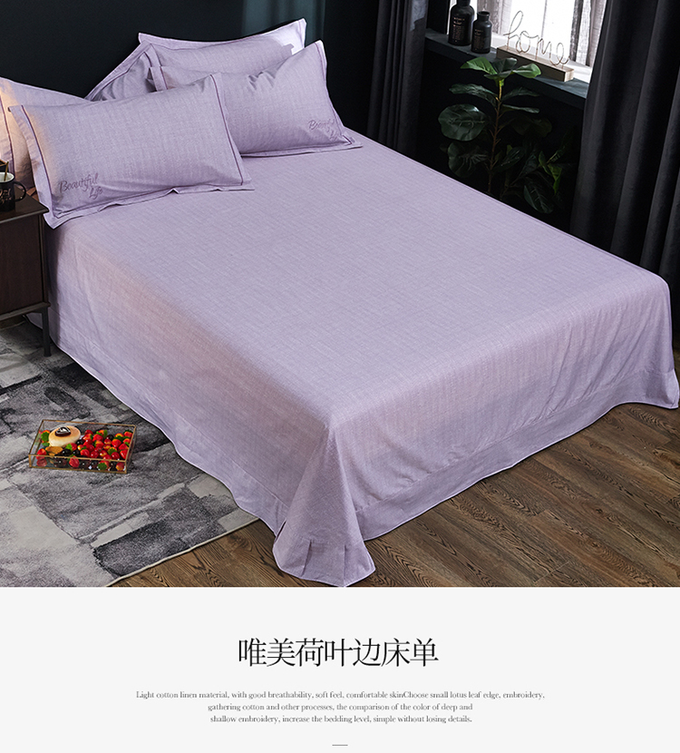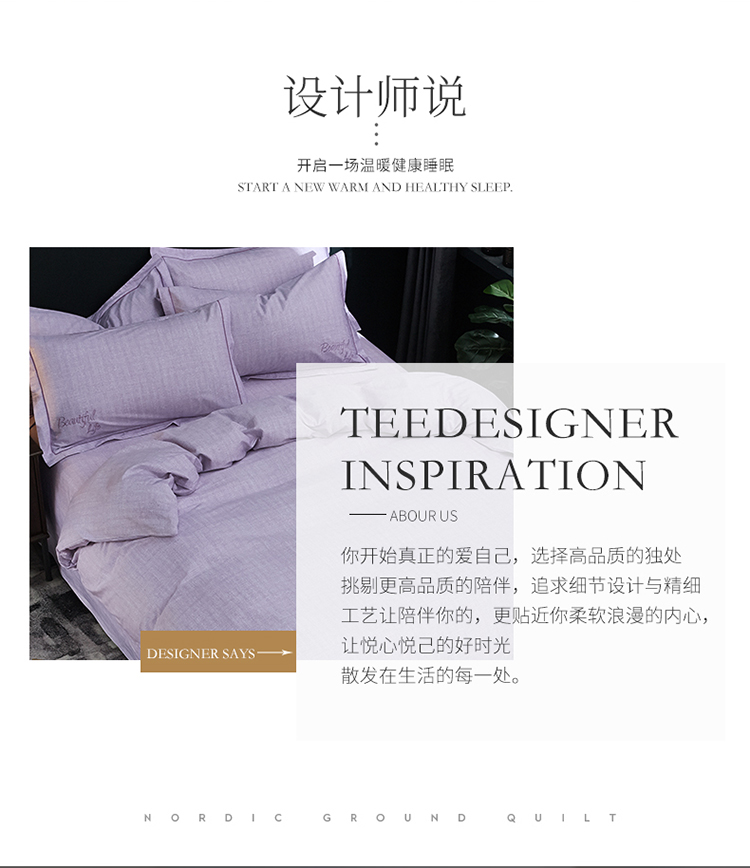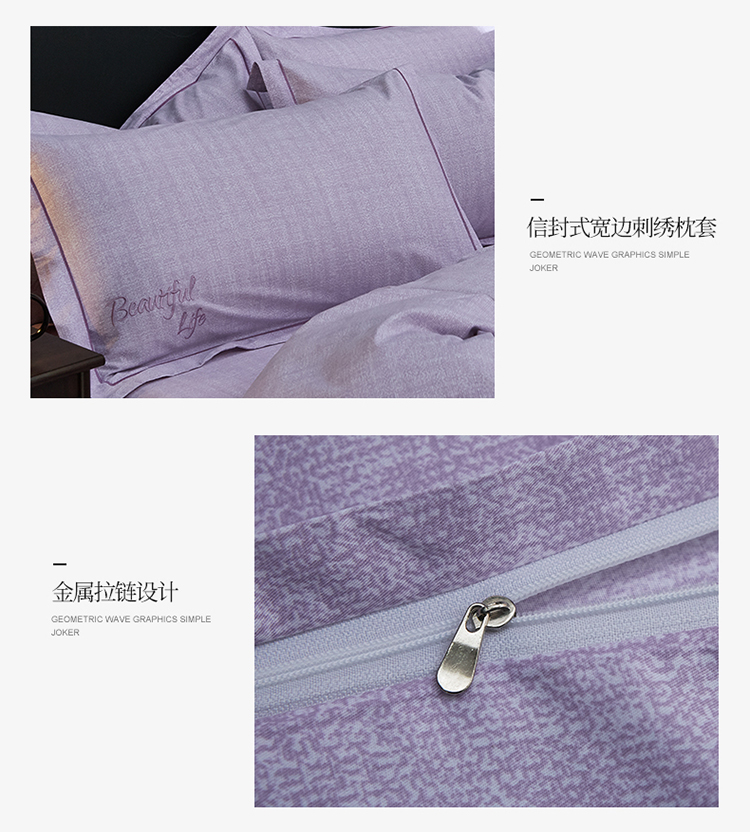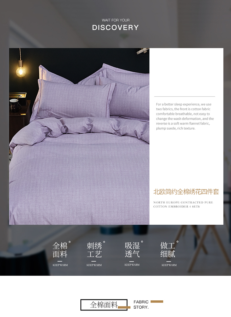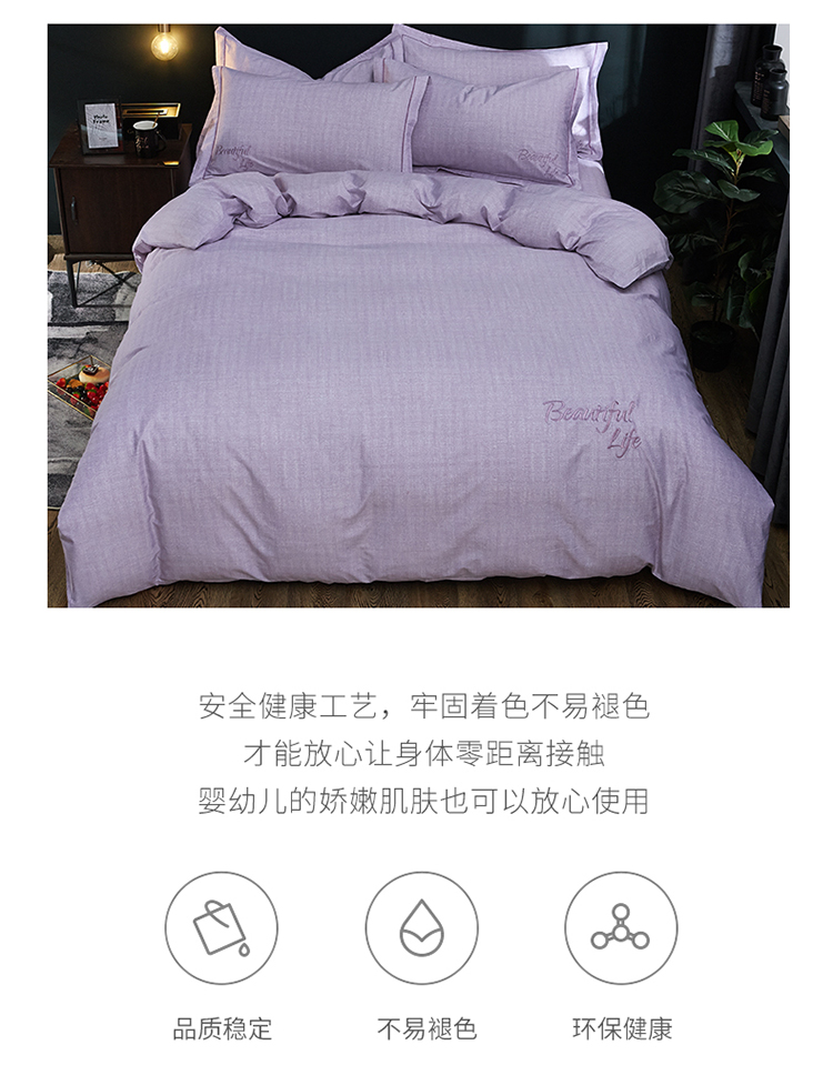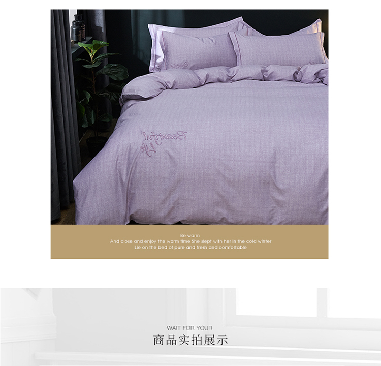 商品名称:雲归梦 北欧简约全棉绣花四件套 圣托里尼-丁香紫