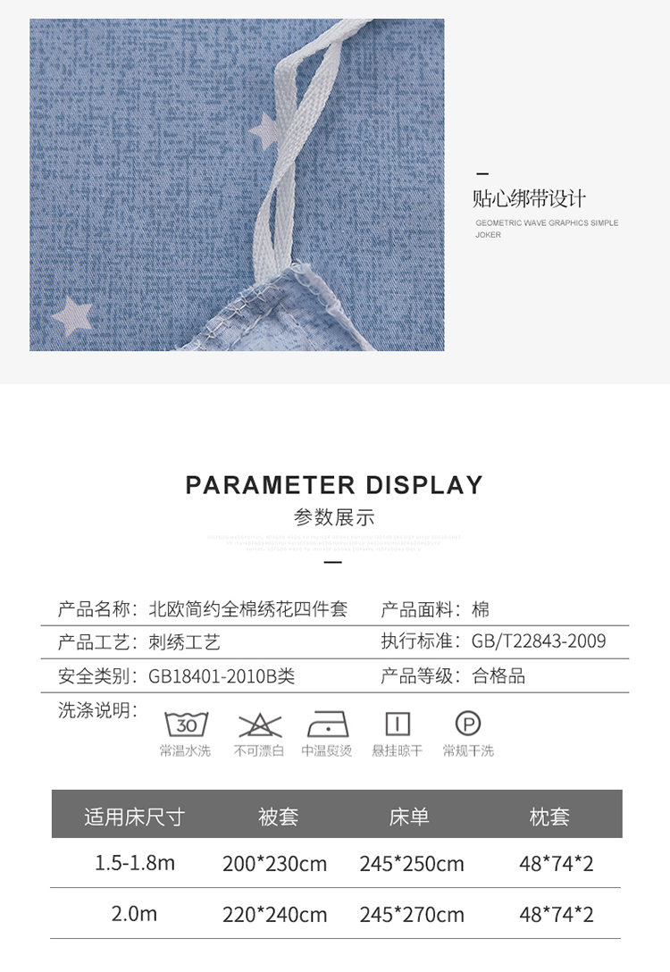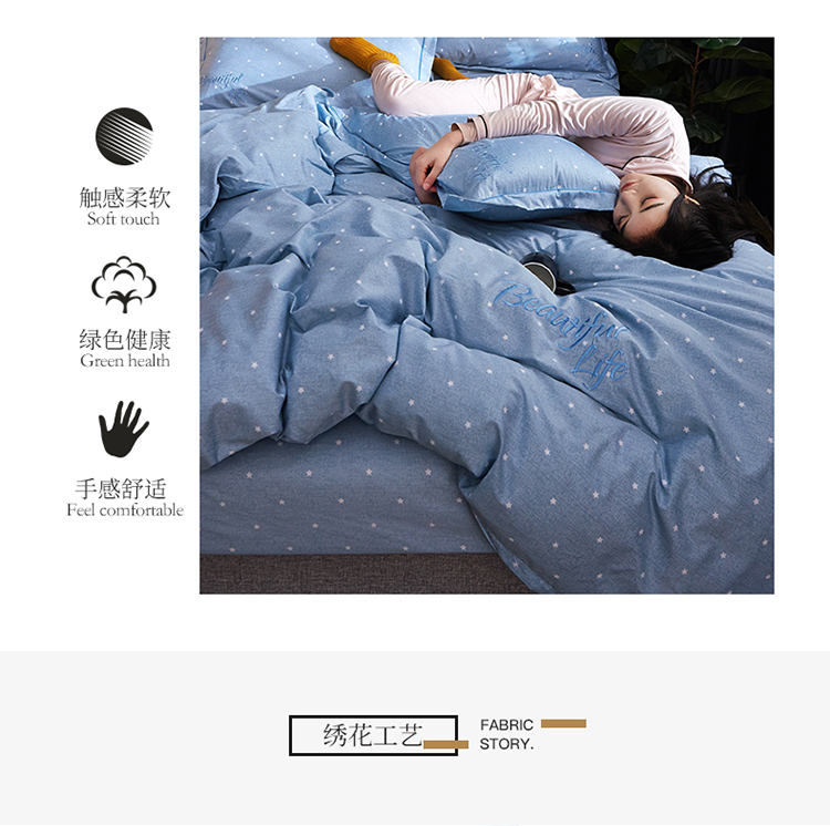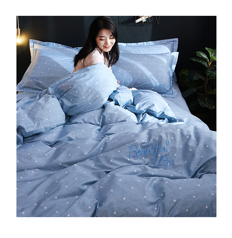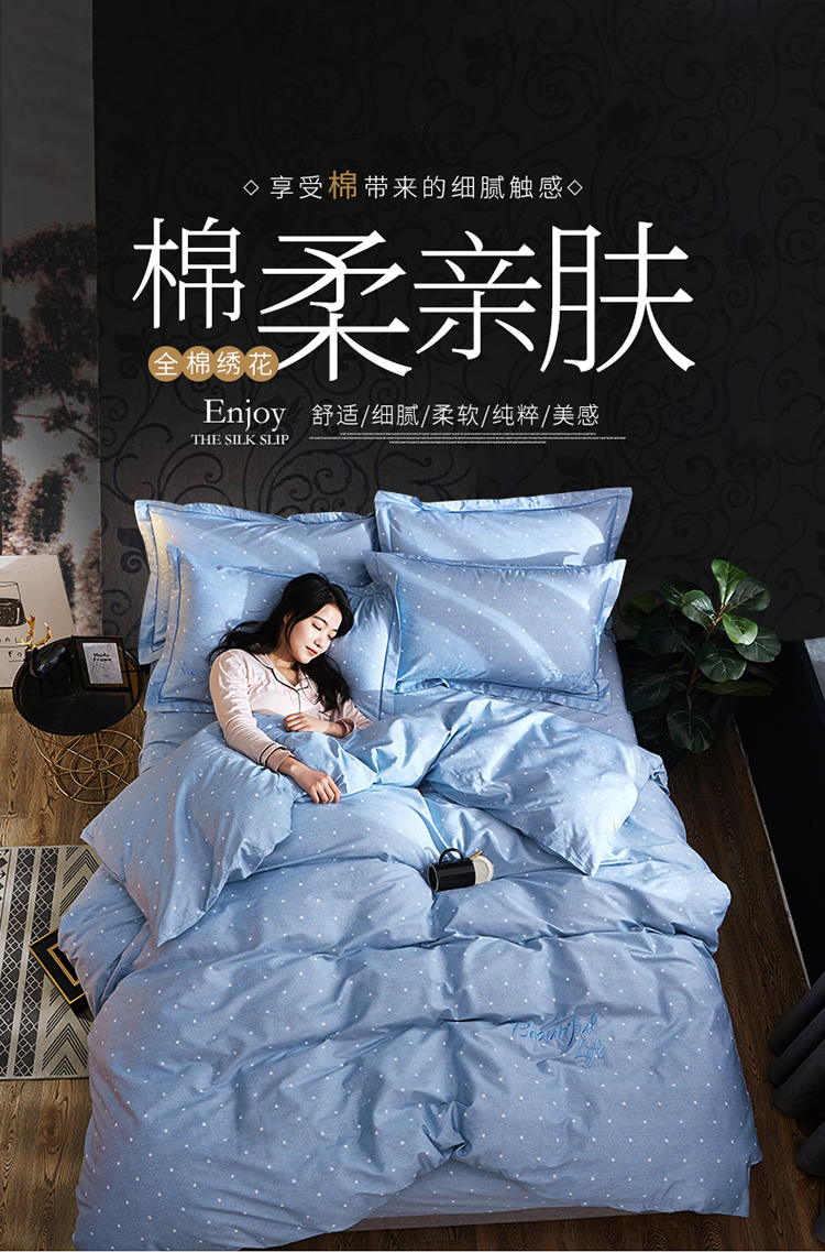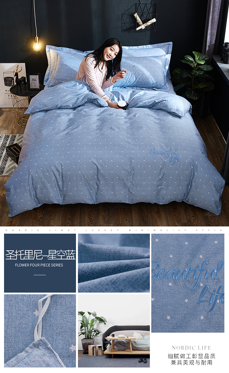 商品名称:雲归梦 北欧简约全棉绣花四件套 圣托里尼-星空蓝