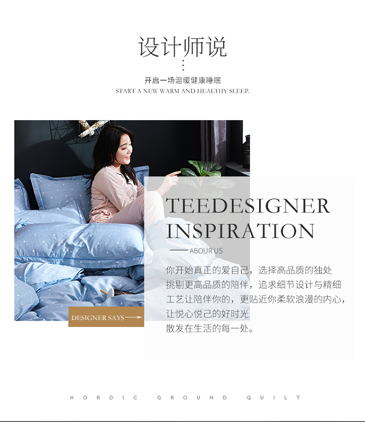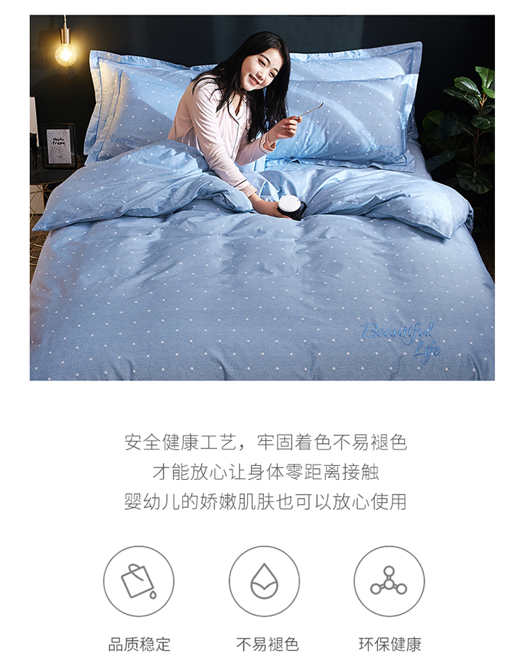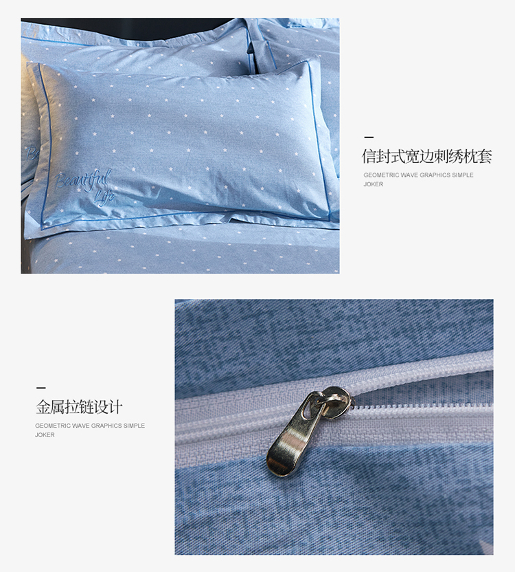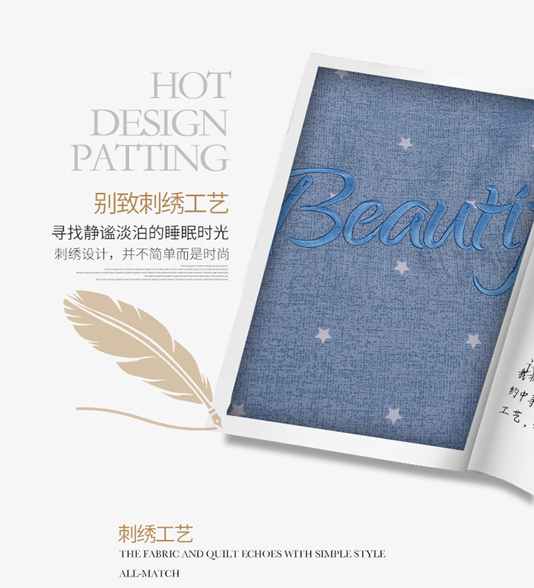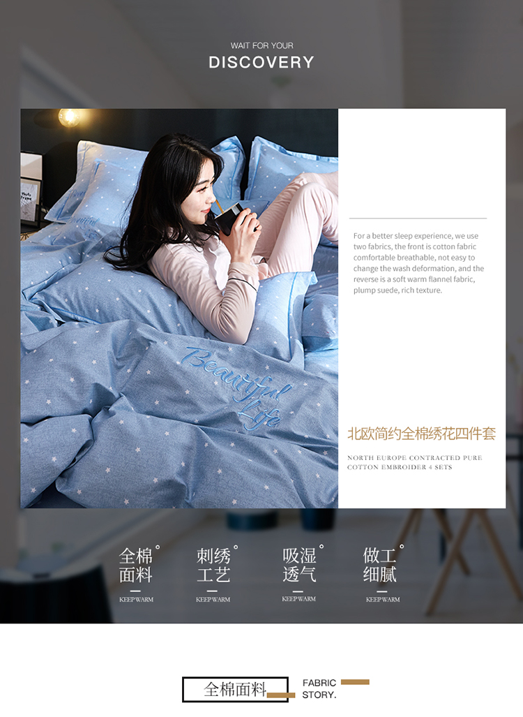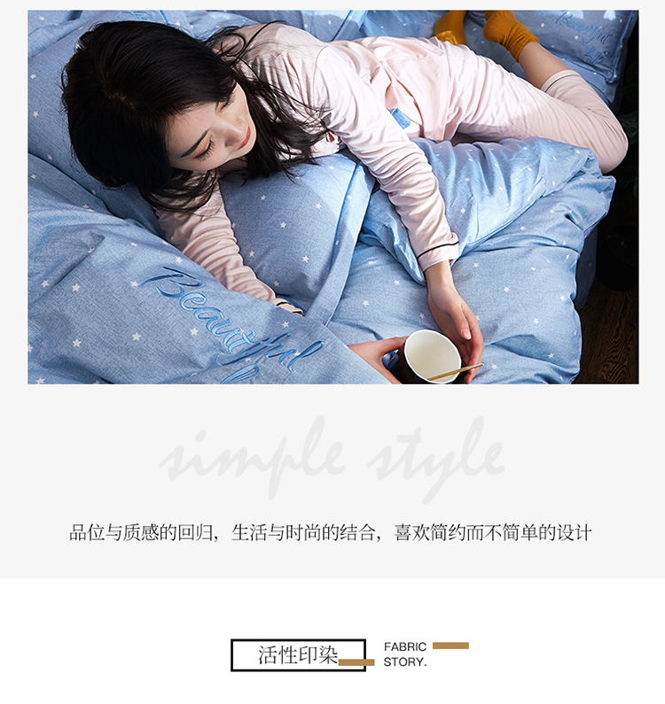 商品名称:雲归梦 北欧简约全棉绣花四件套 圣托里尼-星空蓝