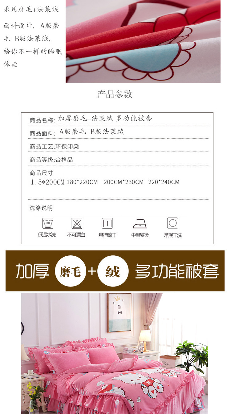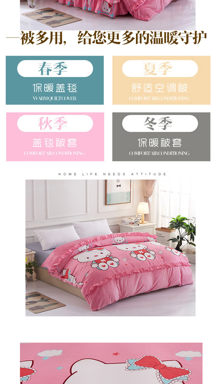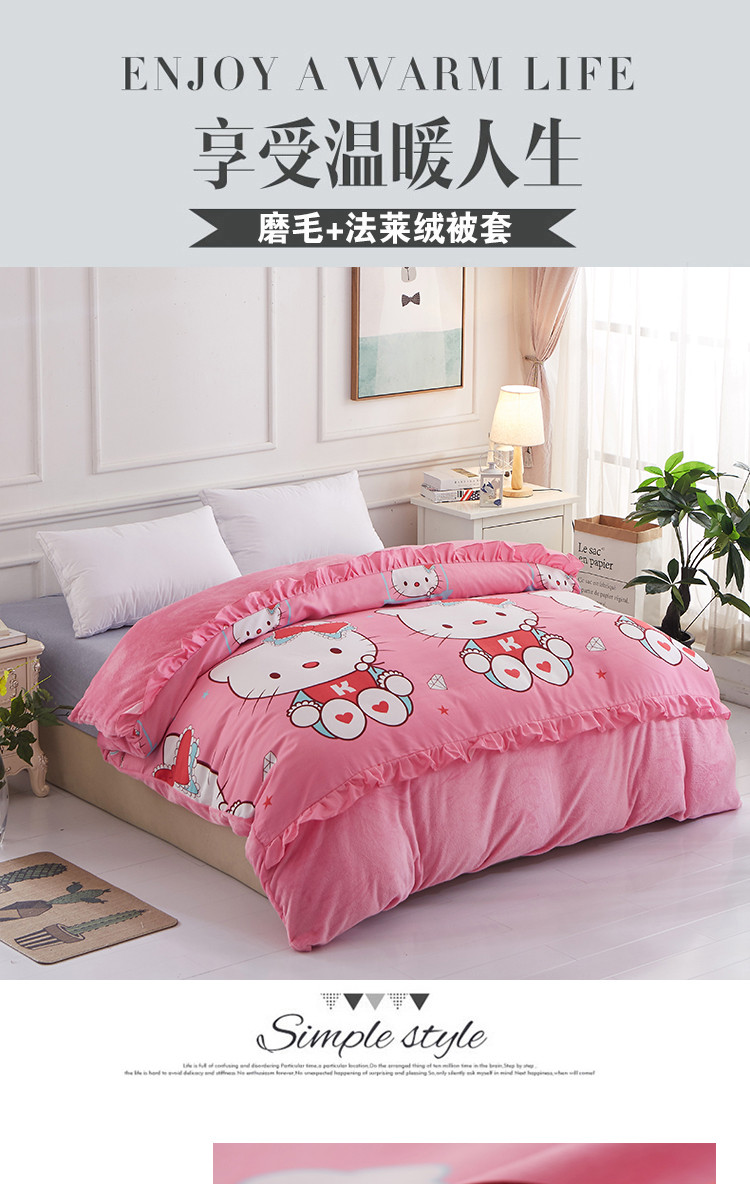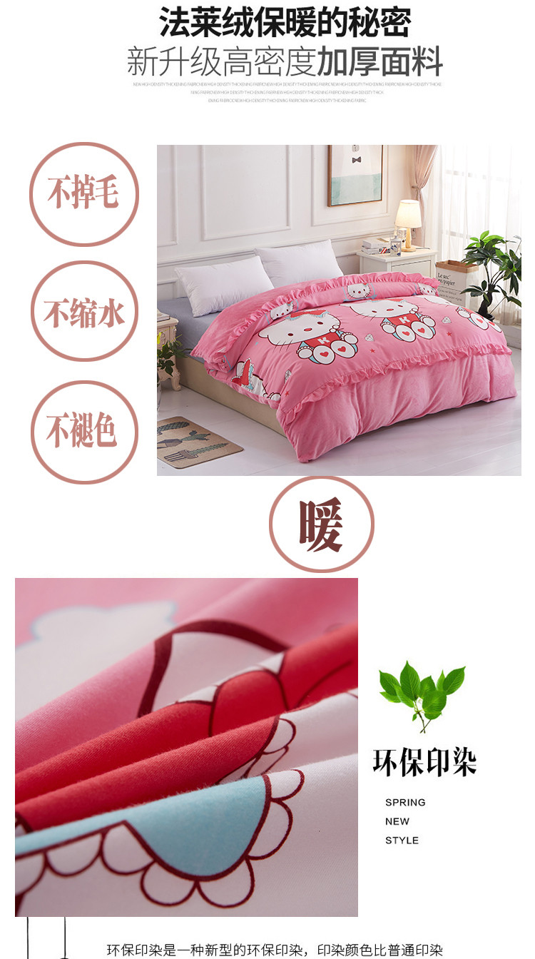 商品名称:铠畅 2019韩版法莱绒床裙单被套 你好喵